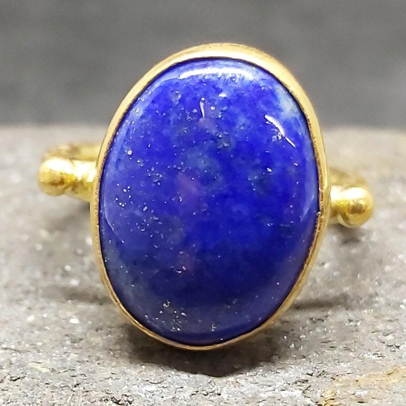 Овальное кольцо с лазуритом, кольцо из стерлингового серебра 925 пробы, кольцо из желтого золота, эффектное кольцо, кольцо с безелем, ювелирные изделия ручной работы