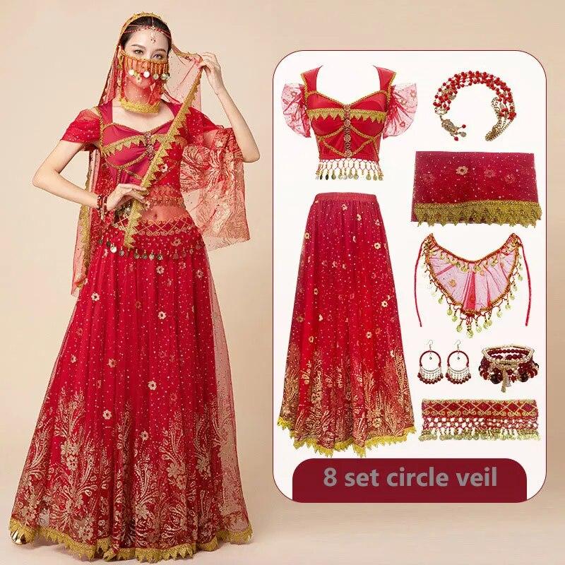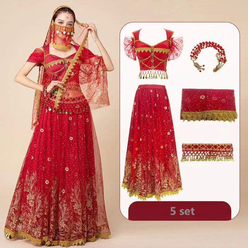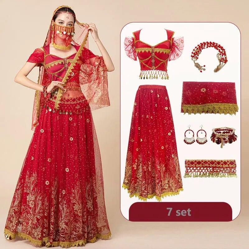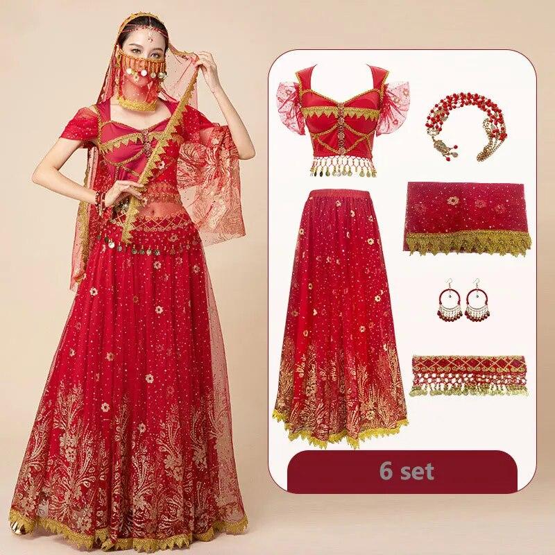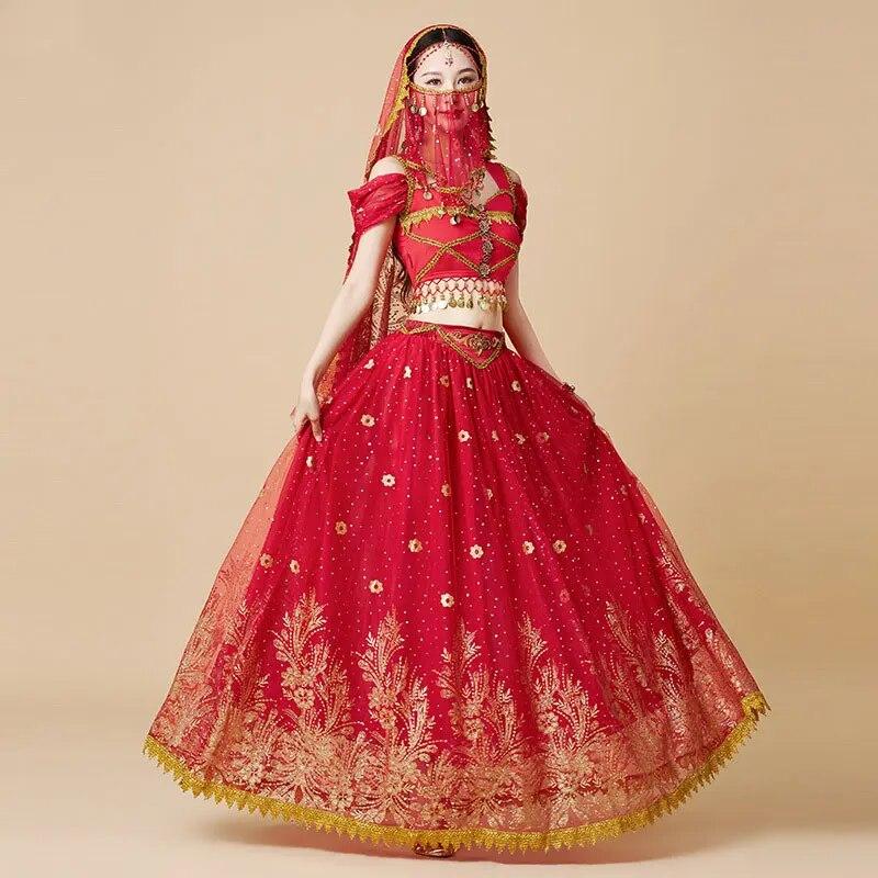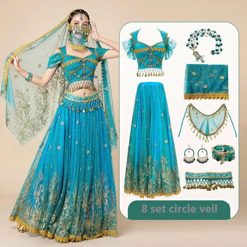Женский фестиваль Хэллоуин Косплей Танец живота Верхнее платье для взрослых Индийское арабское сари Фэнтези Рейв Болливудский наряд Костюм Костюм