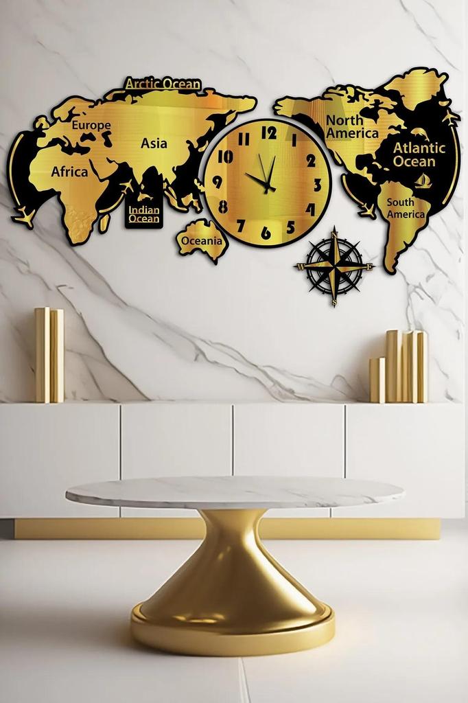 Декоративные настенные часы и набор карт мира Уникальный дизайн Настенный декор Домашний офис Гостиная Европа Азия Америка Континентальная карта мира с настенными часами