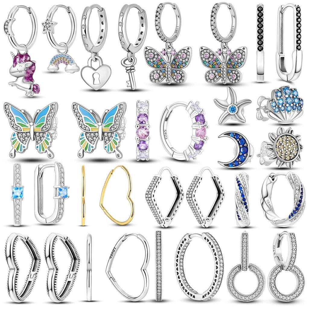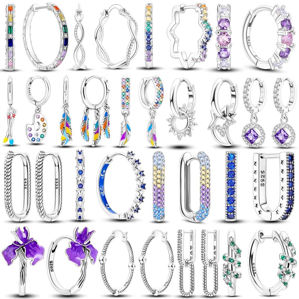 Сверкающие серьги-гвоздики из серебра 925 пробы, свадебный подарок, двойные серьги-кольца, подвески для женщин, помолвка, годовщина