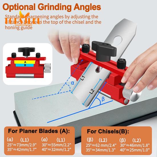 Регулируемый угол резкости: Легко добиться стандартного угла заточки, регулируя расстояние между долотом и хонинговальной направляющей.