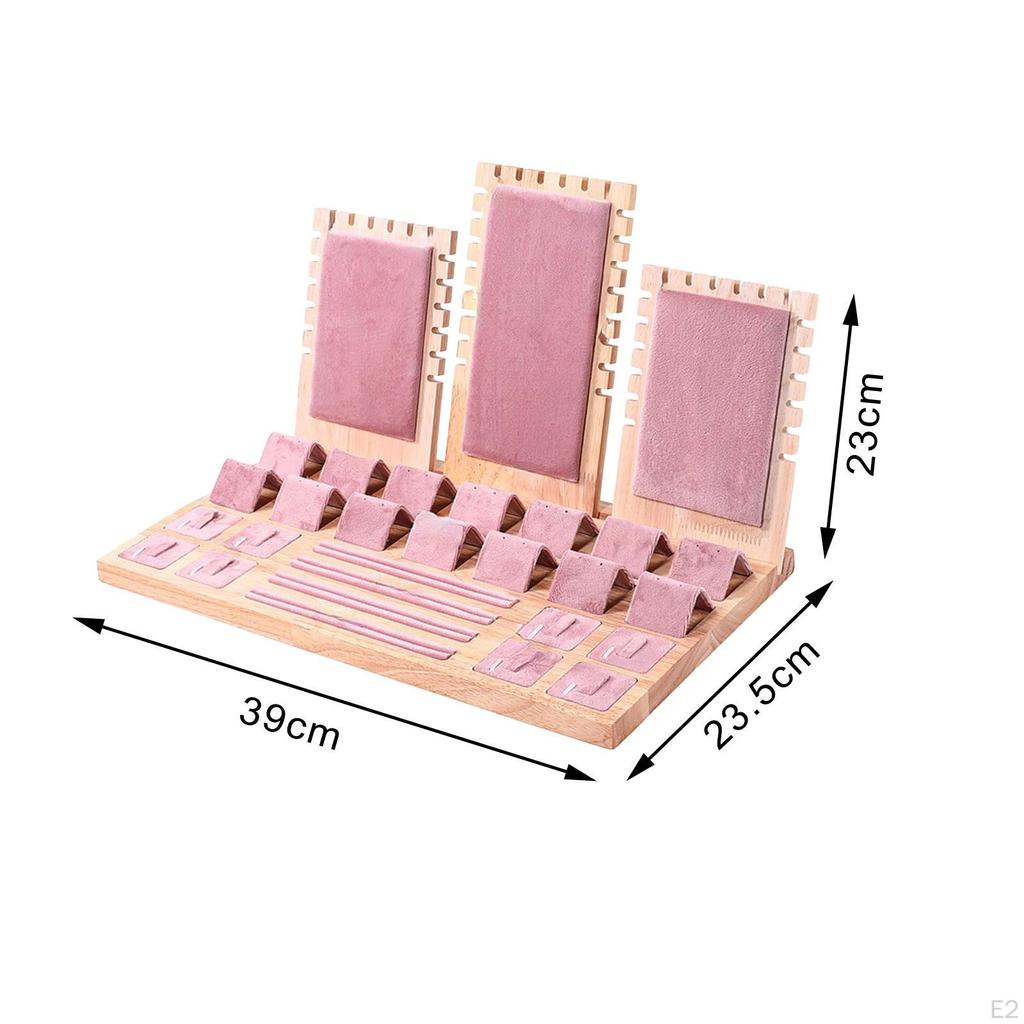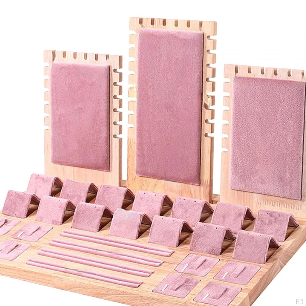 Лоток для хранения ювелирных изделий, подставка для ожерелья, деревянная витрина 15,3x9,2x9 дюймов, розовая для магазина