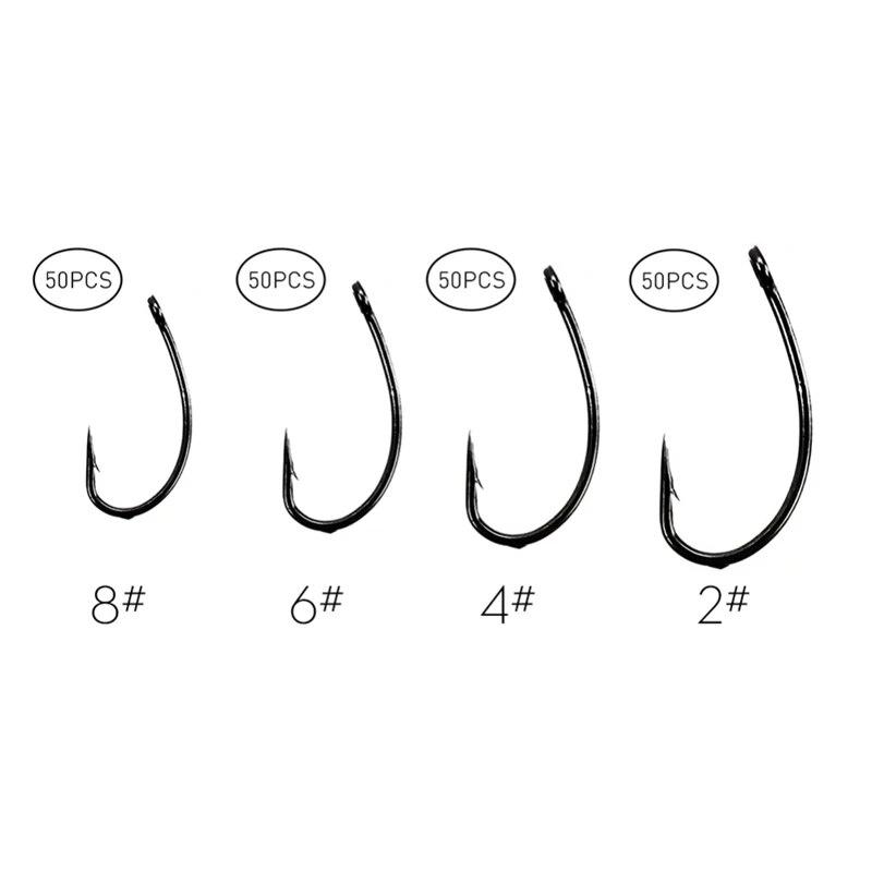 50 шт./лот, морской смещенный крючок 2 # 4 # 6 # 8 #, одинарный колючий крючок для ловли карпа, стальные рыболовные крючки для наживки, набор рыболовных крючков с коробкой