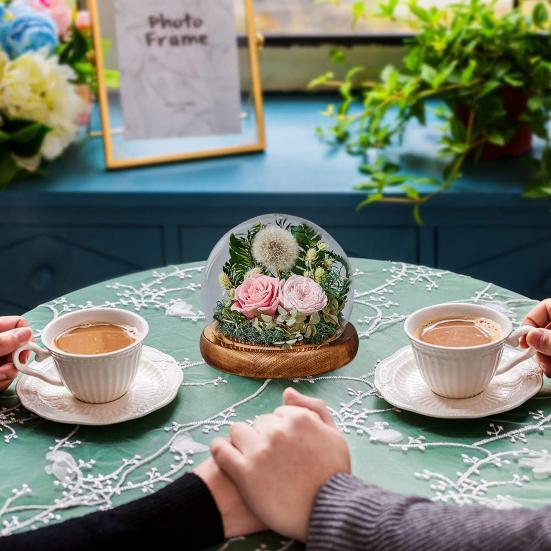 Представляем стеклянную крышку с стабилизированным цветком, потрясающее и романтичное дополнение к любому дому.. Эти красочные стабилизированные розы излучают теплый и очаровательный свет, создавая приятную атмосферу в вашей спальне или гостиной..