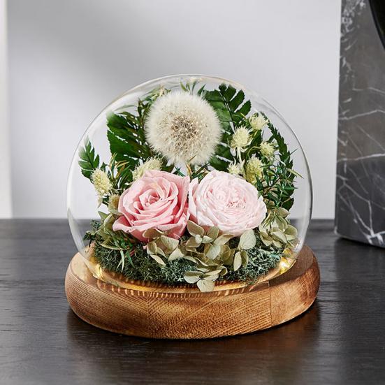 Высококачественные стабилизированные розы в стеклянной крышке создают очаровательный теплый свет, идеально подходящий для освещения вашего дома и спальни в ночное время.