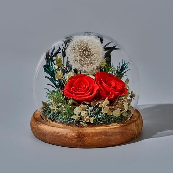 Стеклянный купол можно снять, но не рекомендуется, так как нежные розы и листья чувствительны к манипуляциям.. Добавьте нотку романтики и тепла в жизнь близкого человека с помощью стеклянной крышки с стабилизированным цветком.