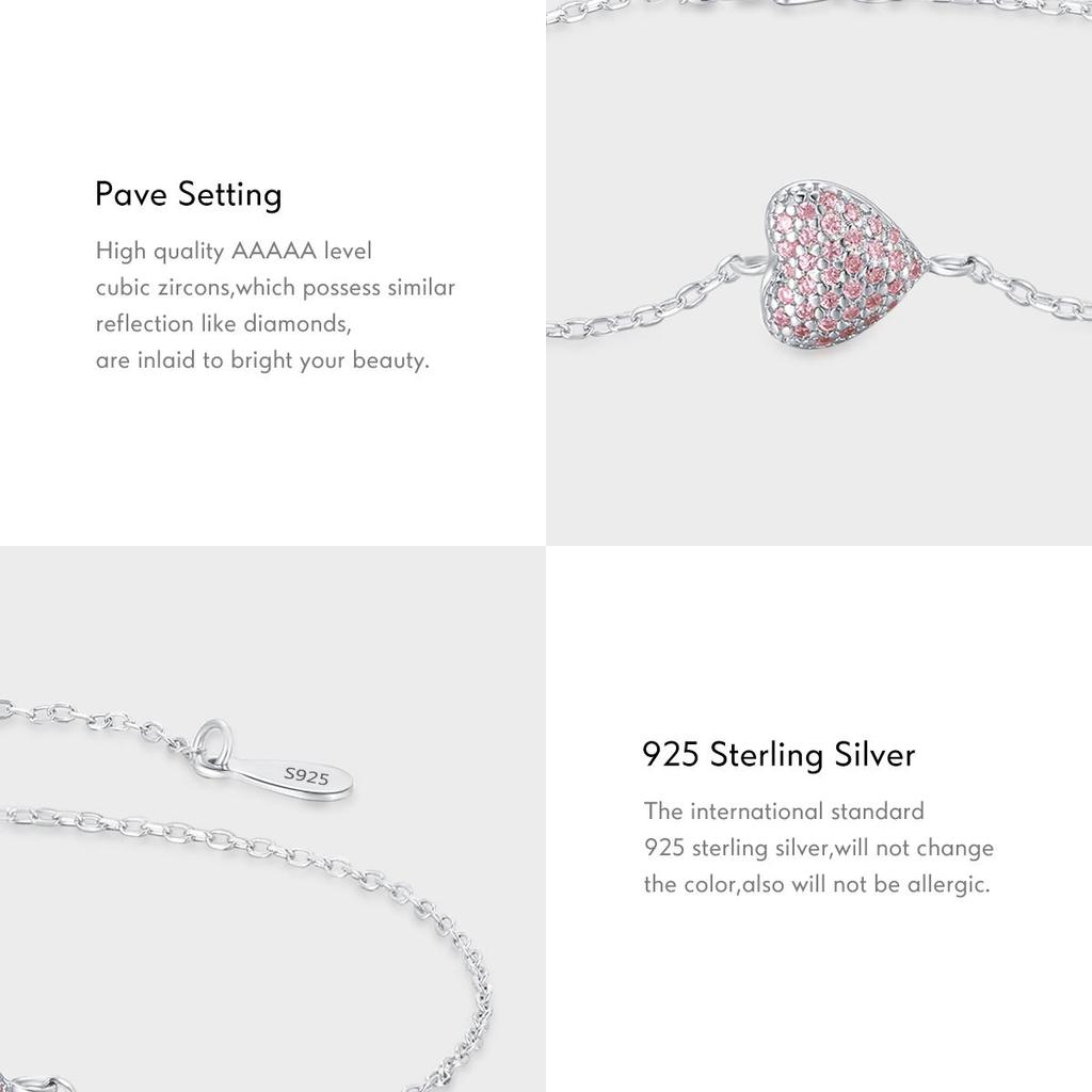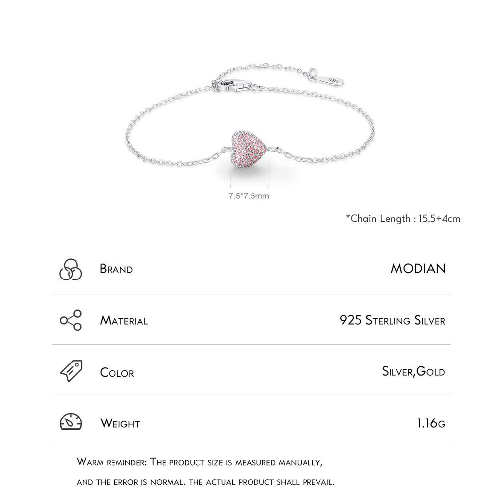 MODIAN Стерлингового серебра 925 пробы, светло-розовый циркон в форме сердца, регулируемый браслет-цепочка для женщин, ювелирные изделия, романтический подарок на годовщину
