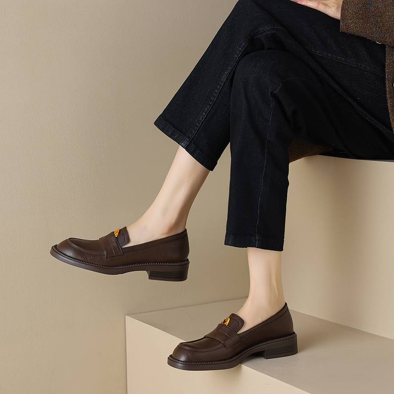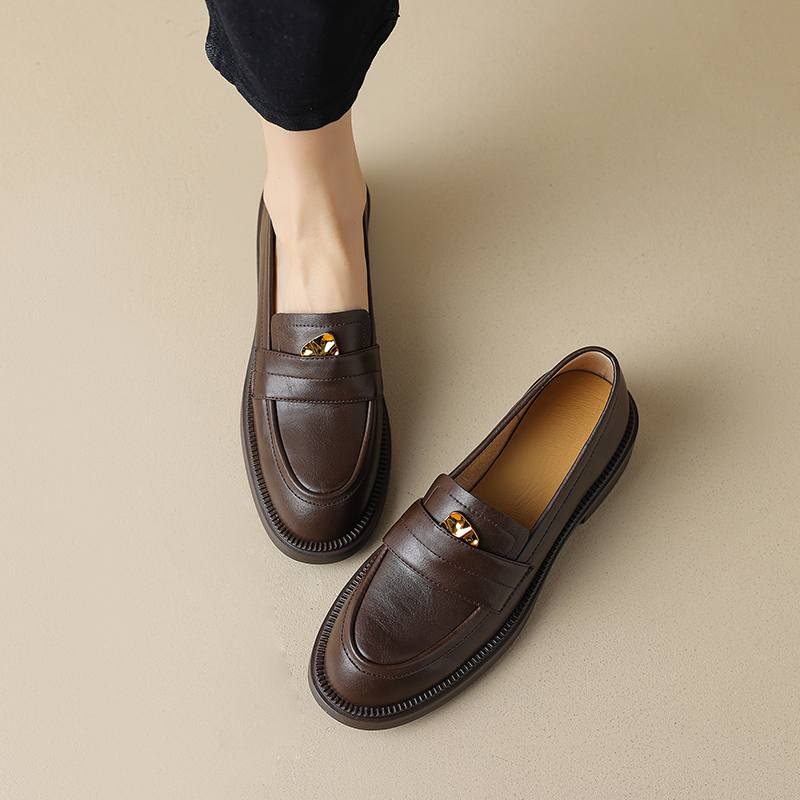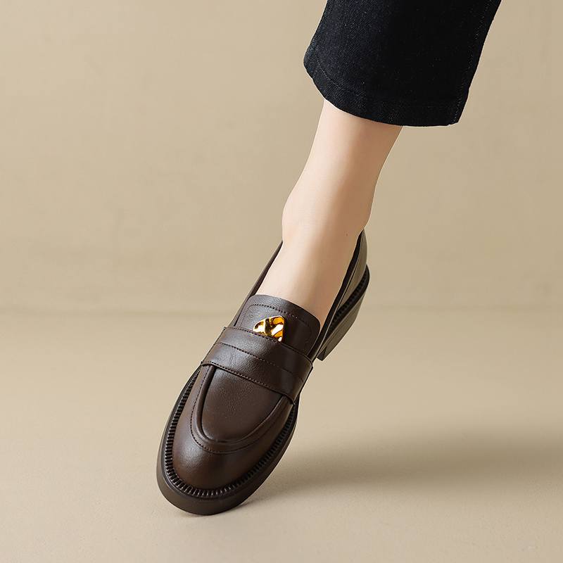 Krazing Pot Весенние туфли из коровьей кожи с круглым носком на низком каблуке, броги, женские туфли-лодочки с металлическими застежками и глубоким вырезом