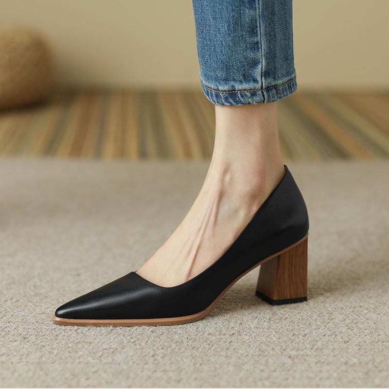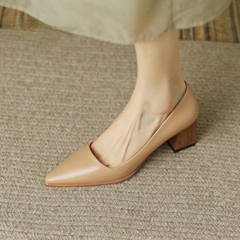 2024 весенняя женская обувь, женские туфли-лодочки без шнуровки, туфли на высоком квадратном каблуке с острым носком, женские однотонные женские туфли-лодочки на высоком каблуке