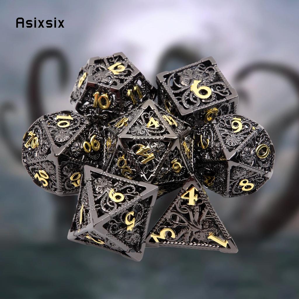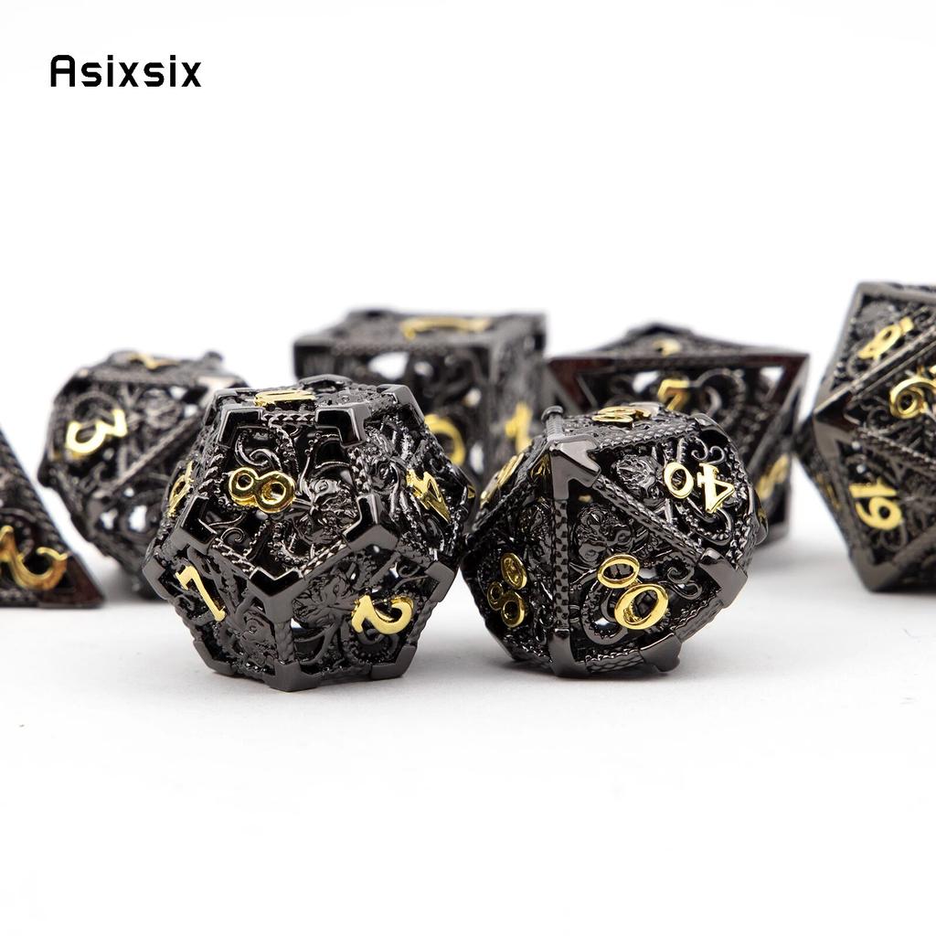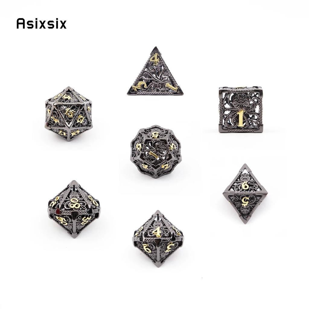 7 шт. черный, золотой кальмар, металлические игральные кости, набор полых металлических многогранных кубиков, подходит для ролевой игры, настольной игры, карточной игры