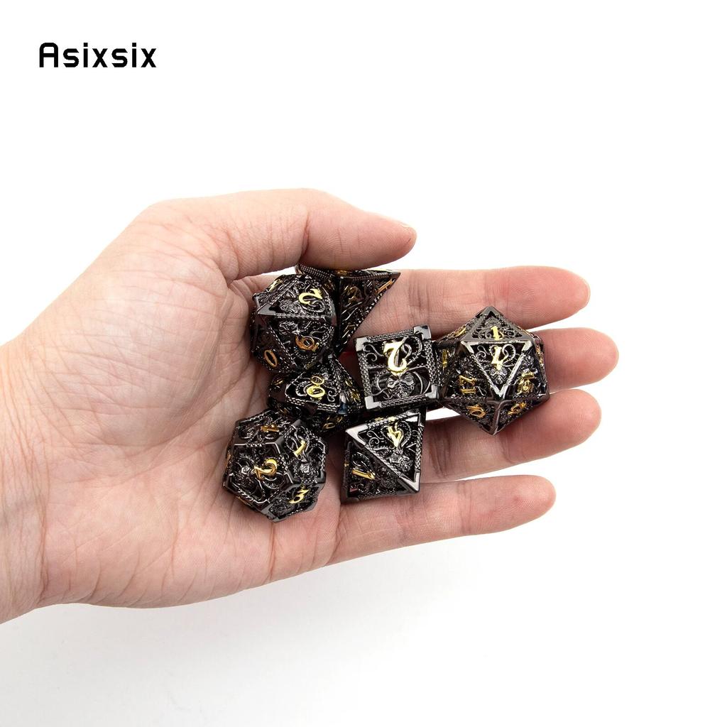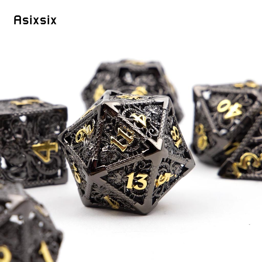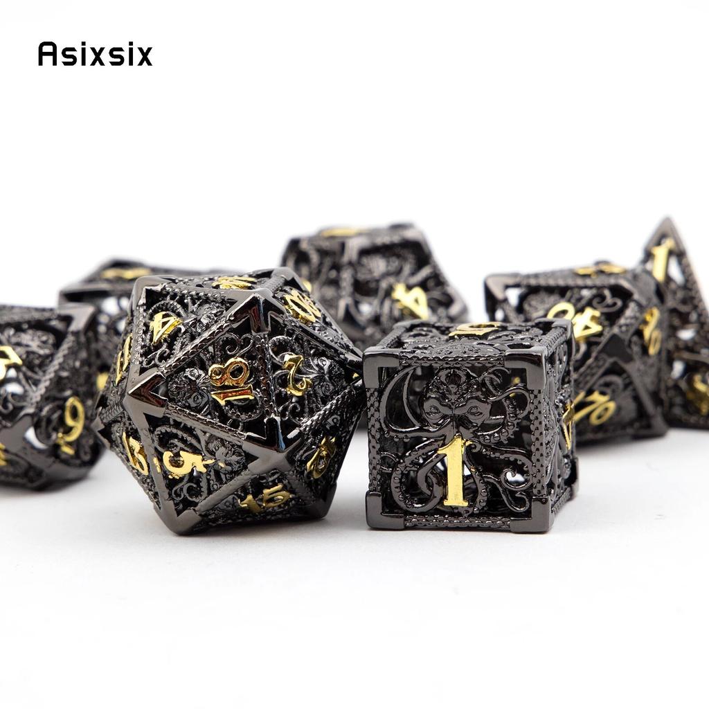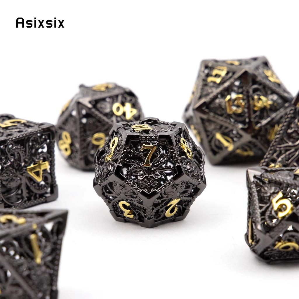 7 шт. черный, золотой кальмар, металлические игральные кости, набор полых металлических многогранных кубиков, подходит для ролевой игры, настольной игры, карточной игры