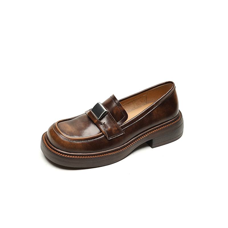Krazing Pot Весенние туфли из коровьей кожи с круглым носком и толстой подошвой, броги, женские туфли-лодочки на платформе с металлическими застежками