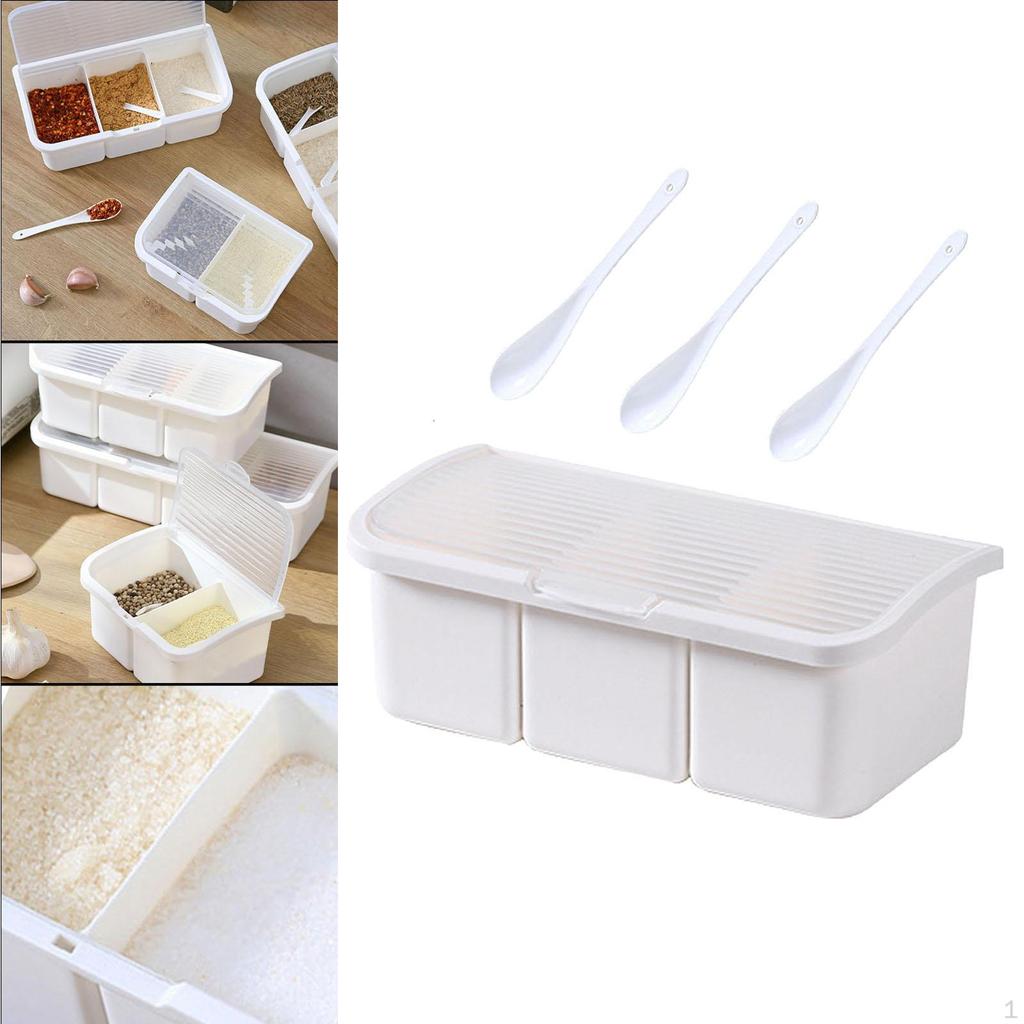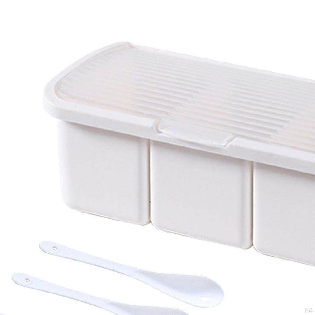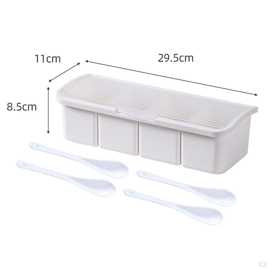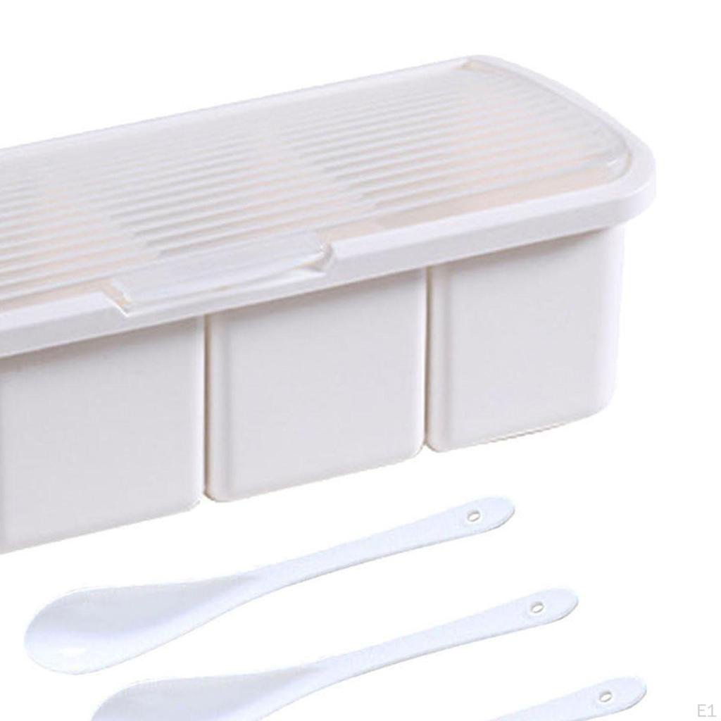 - 【Удобное использование】: В каждом отделении комбинированной коробки для приправ имеется мерная ложка для удобного добавления приправ.. Коробка стоит под углом 95° и имеет большую откидную крышку, которая остается открытой, что позволяет легко использовать ее руками.