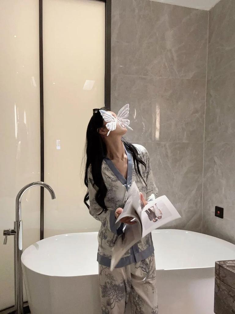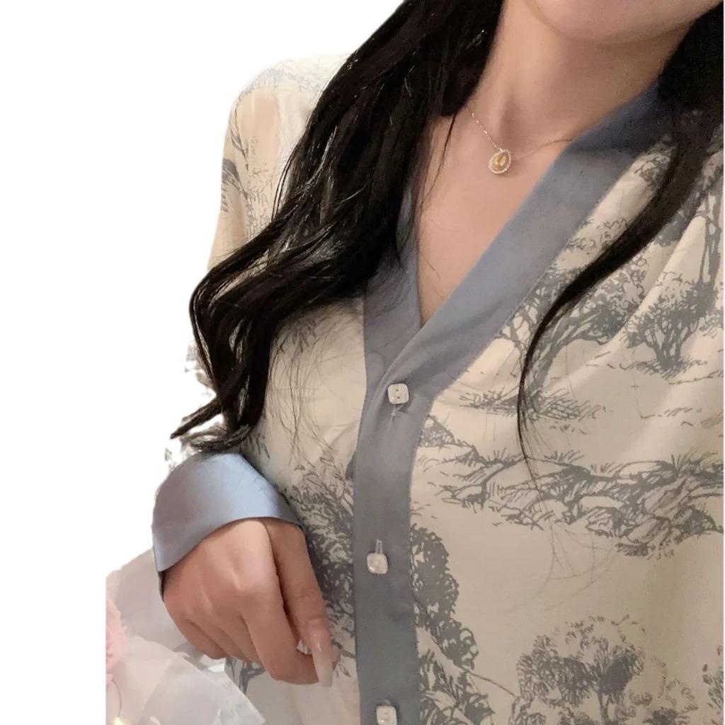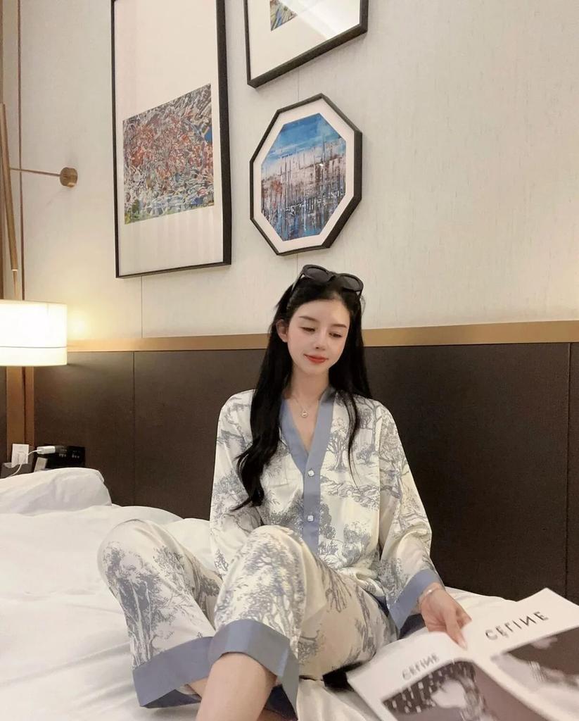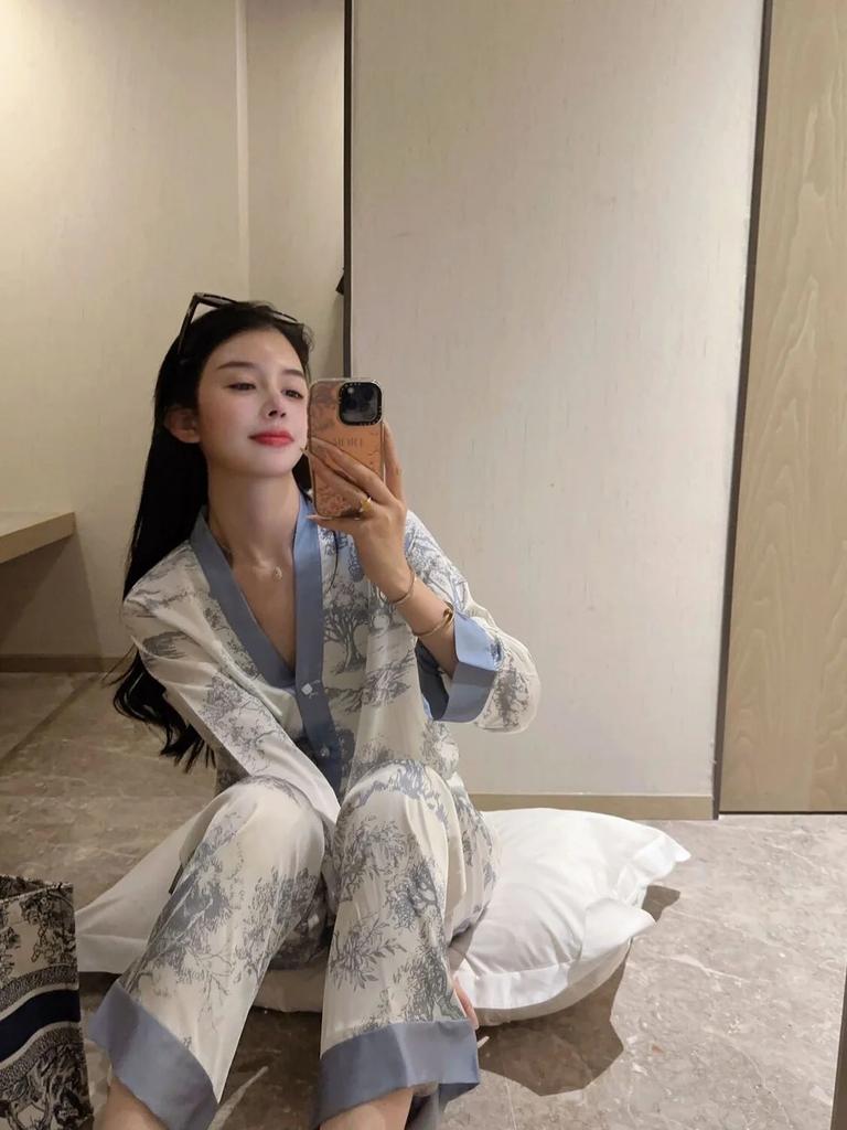 Модные женские пижамы с принтом, шелковая пижама с длинным рукавом, пижамный костюм
