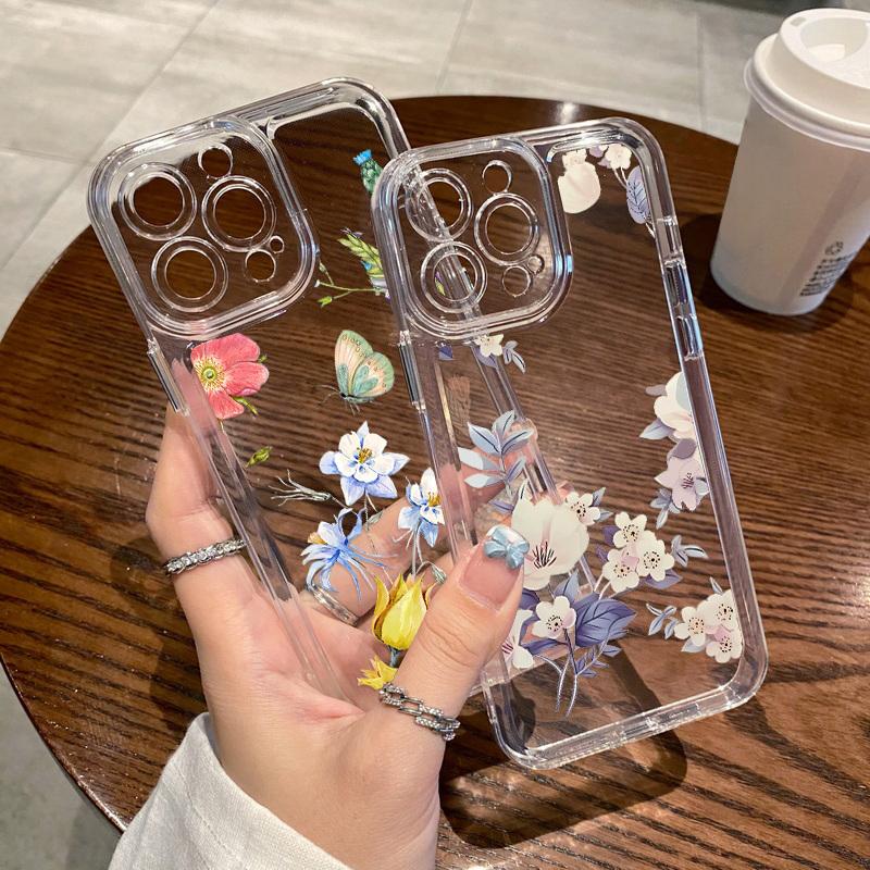 Прозрачный чехол для телефона, все включено, цветочный чехол для iPhone 16, 15 Plus, 14, 13, 12 Mini, 11, Xs, Xr, 7, Samsung S24+, S23, A54, силиконовый мягкий чехол с принтом бабочек