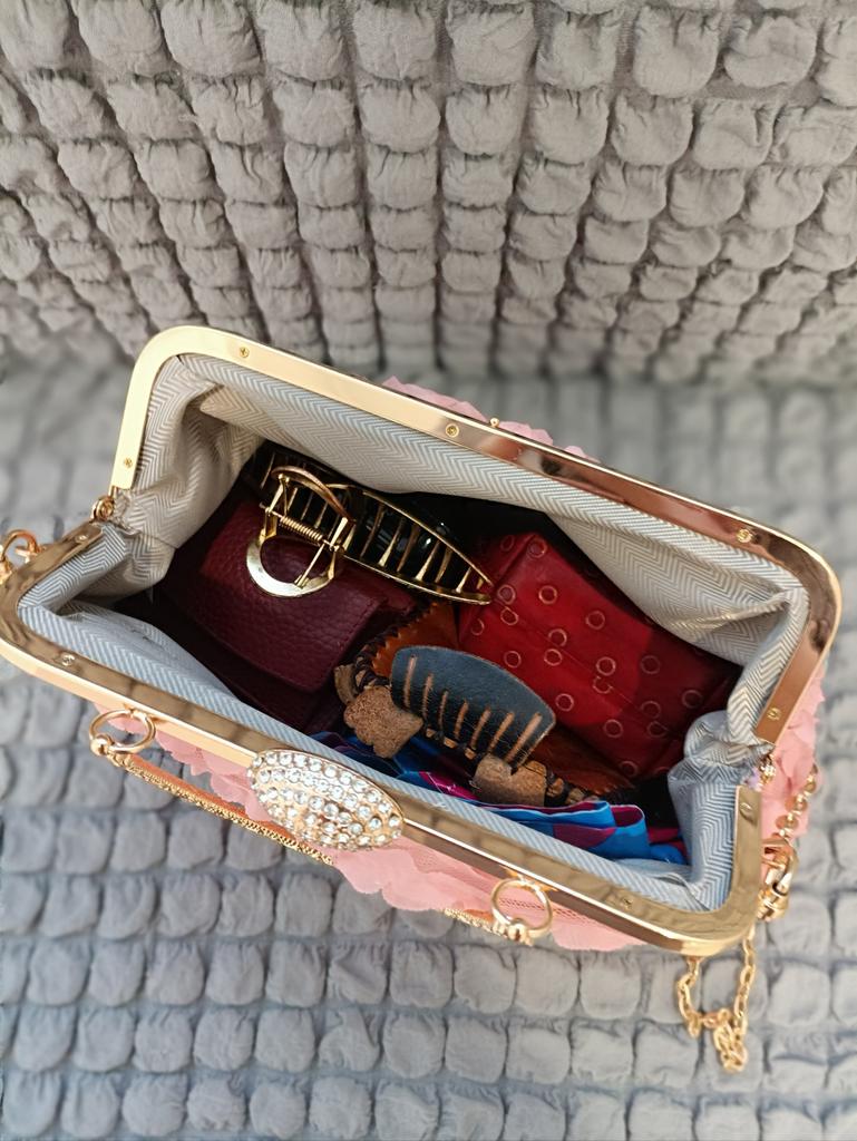 Сборная посылка. Доставка до Санкт-Петербурга ровно месяц. Сумочка вечерняя. Очень симпатичная. Цвет нежный, бледно- розовый. Можно ходить с ней в театр или на вечеринку с друзьями. Мне понравилась. Рекомендую.