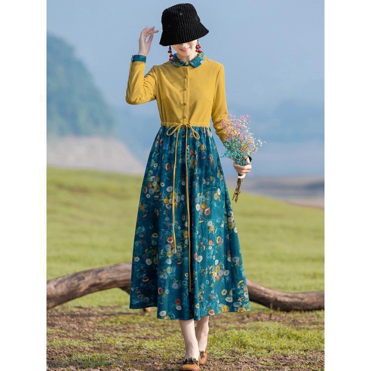 Платье из хлопка и льна в этническом стиле с принтом, длинная юбка для похудения — купить товар онлайн с бесплатной доставкой до всему миру!