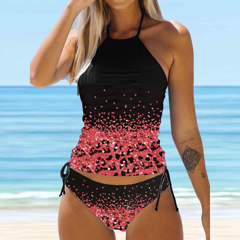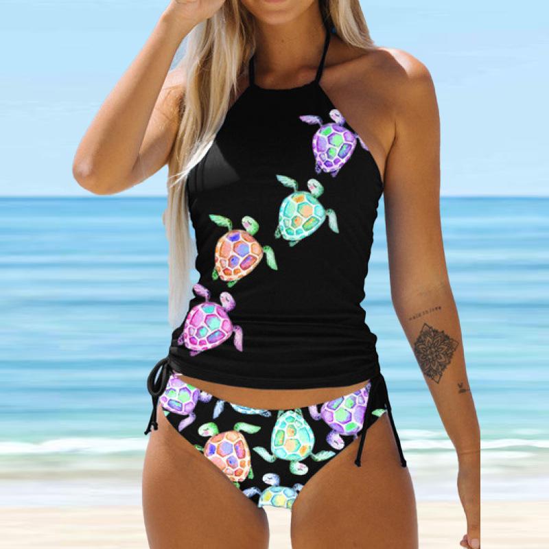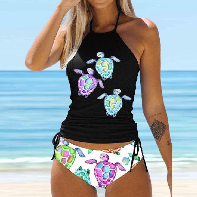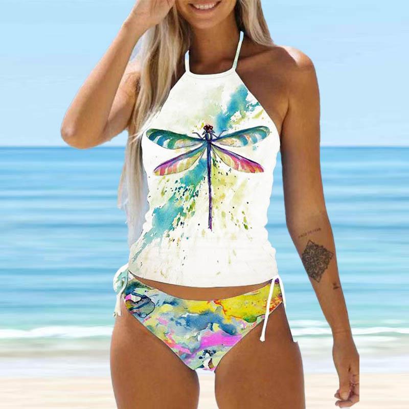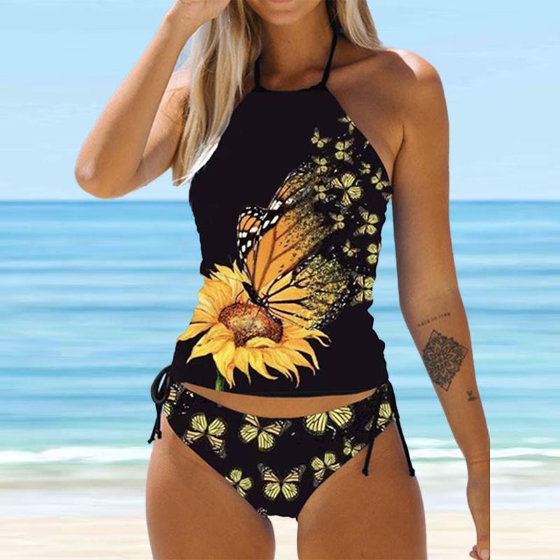 Женский купальник-бикини с бретелькой на шее, бабочкой и одуванчиком, купальник-танкини