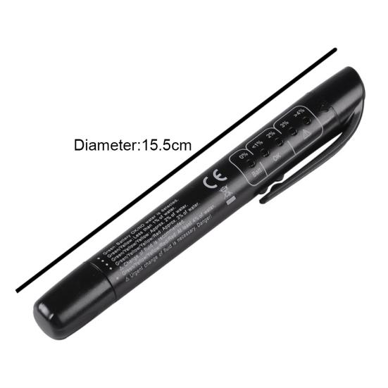 Ручка обнаружения тормозной жидкости основана на изменении проводимости для определения изменения влажности тормозной жидкости. Он четко показывает степень влажности, содержащейся в светодиоде, высокое содержание влаги приведет к снижению температуры кипения, повлияет на эффективность торможения. Красный цвет указывает на то, что тормозная жидкость нуждается в немедленной замене, зеленый представляет хорошее состояние, желтый указывает на то, что состояние приемлемо, но вскоре заменено.