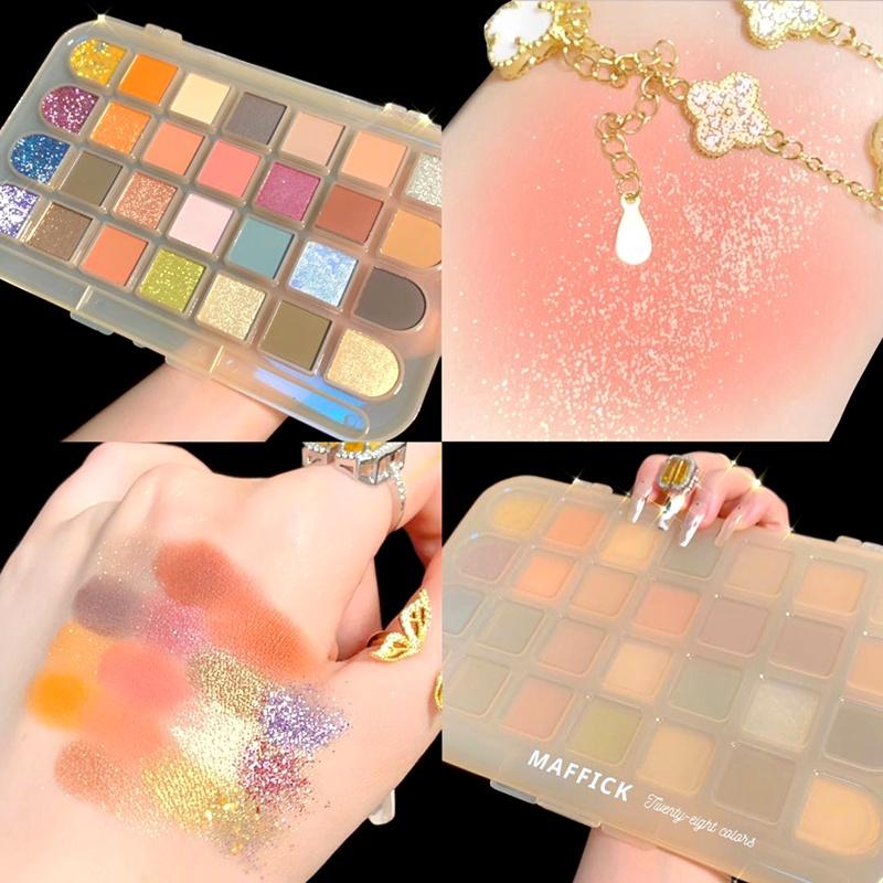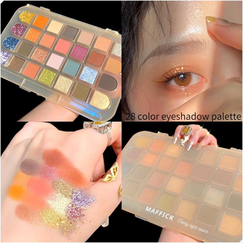 28-цветный лоток для теней для век Перламутровый матовый цельный лоток с естественным контуром Прочная водонепроницаемая и устойчивая к поту студенческая косметика для начинающих