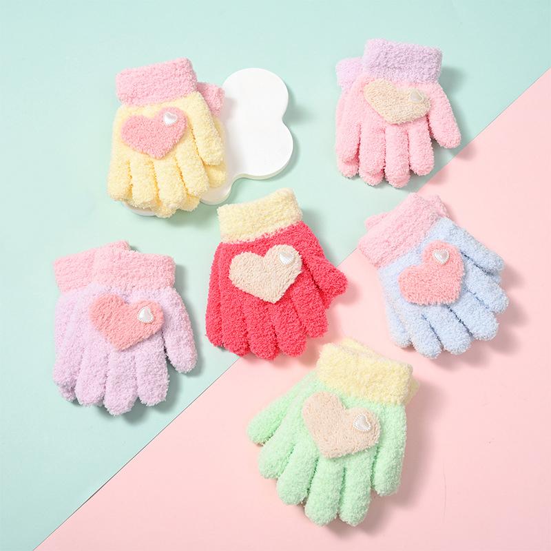 Детские перчатки, плюшевые перчатки для мальчиков и девочек, детские перчатки с украшением в форме сердца из мультфильма