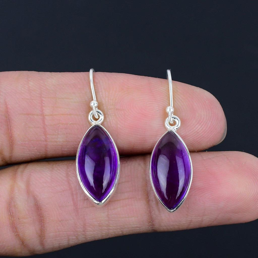 Серьги с натуральным аметистом и драгоценным камнем, твердое серебро 925 пробы, серьги-капли ручной работы, висячие серьги, ювелирные изделия, подарок на день Святого Валентина для близких