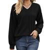 BITCED Осенне-зимняя однотонная свободная повседневная футболка с V-образным вырезом и длинными рукавами для женщин
