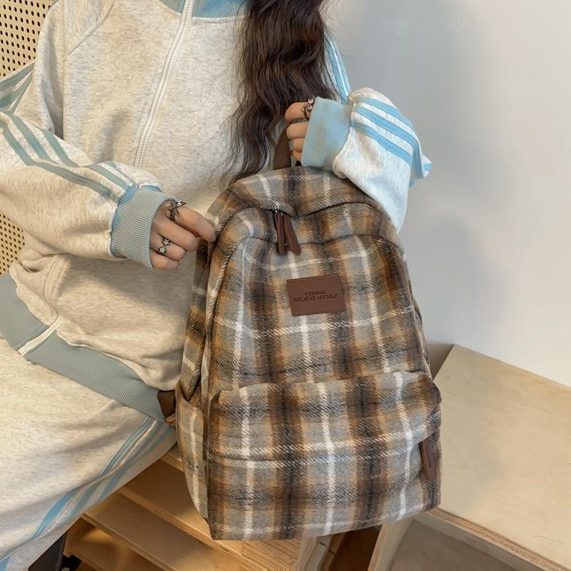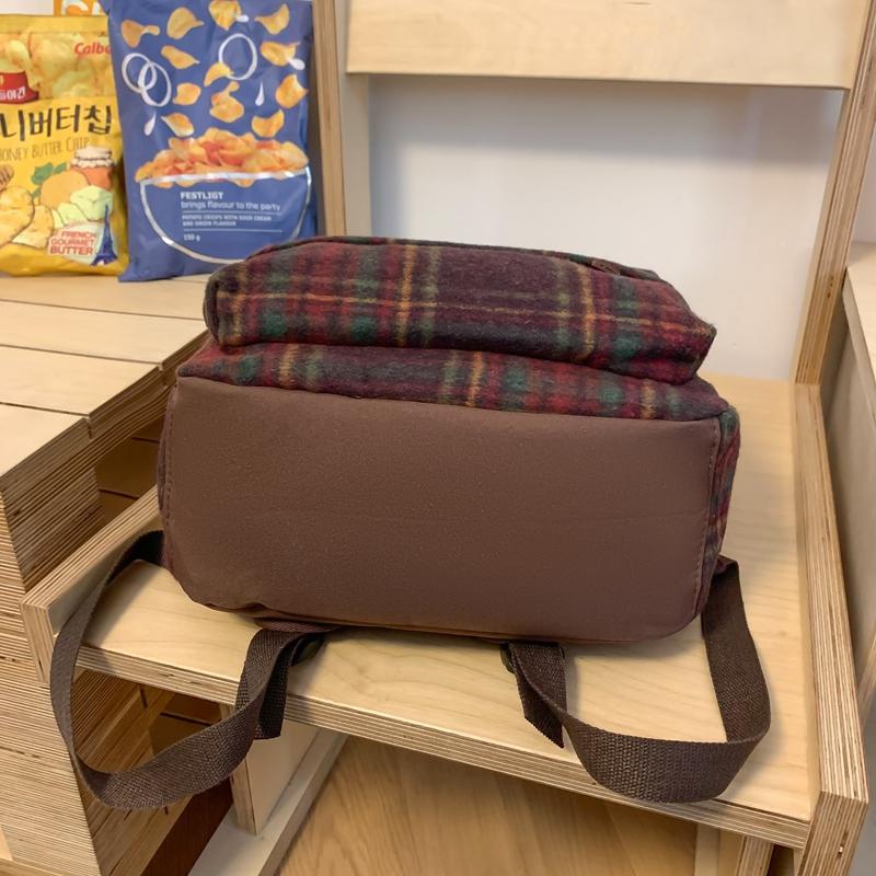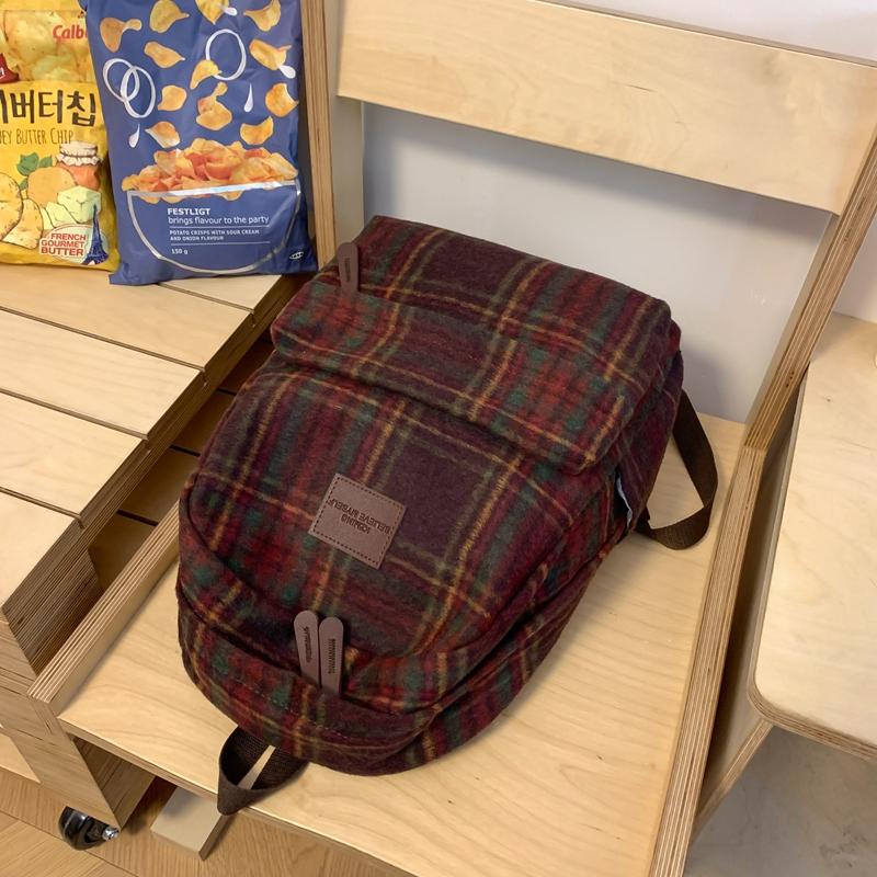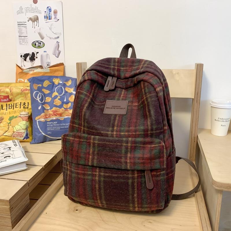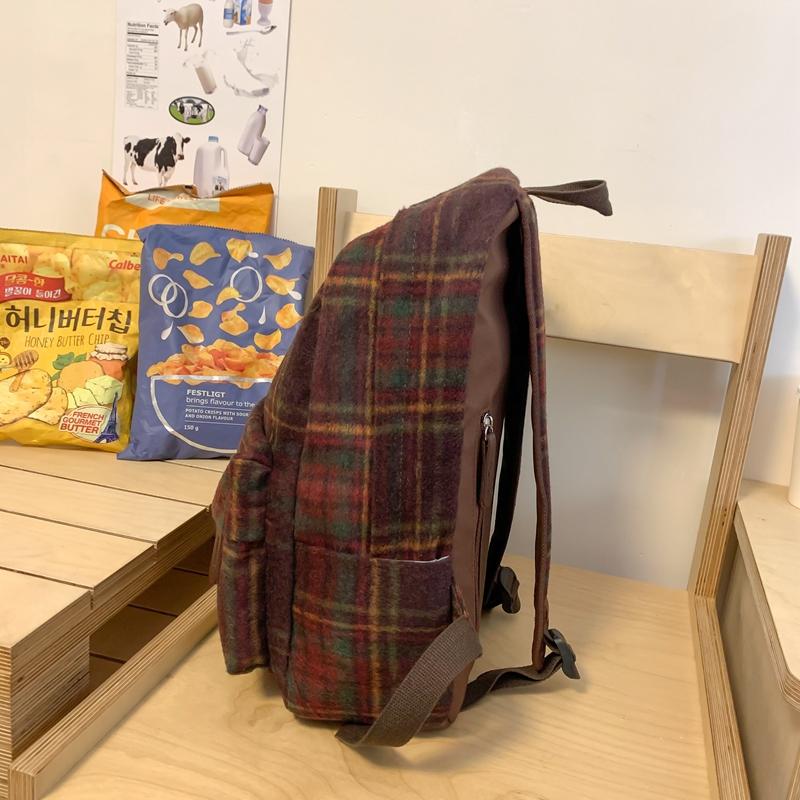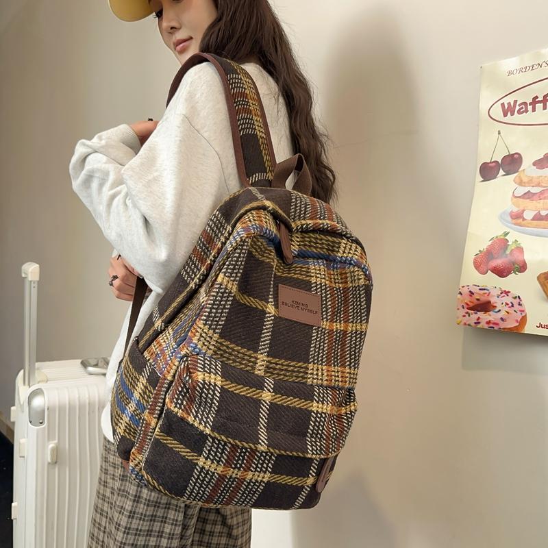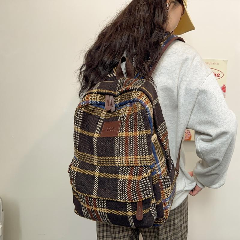 Женский рюкзак в стиле ретро, шерстяной клетчатый школьный рюкзак, школьный рюкзак для девочек