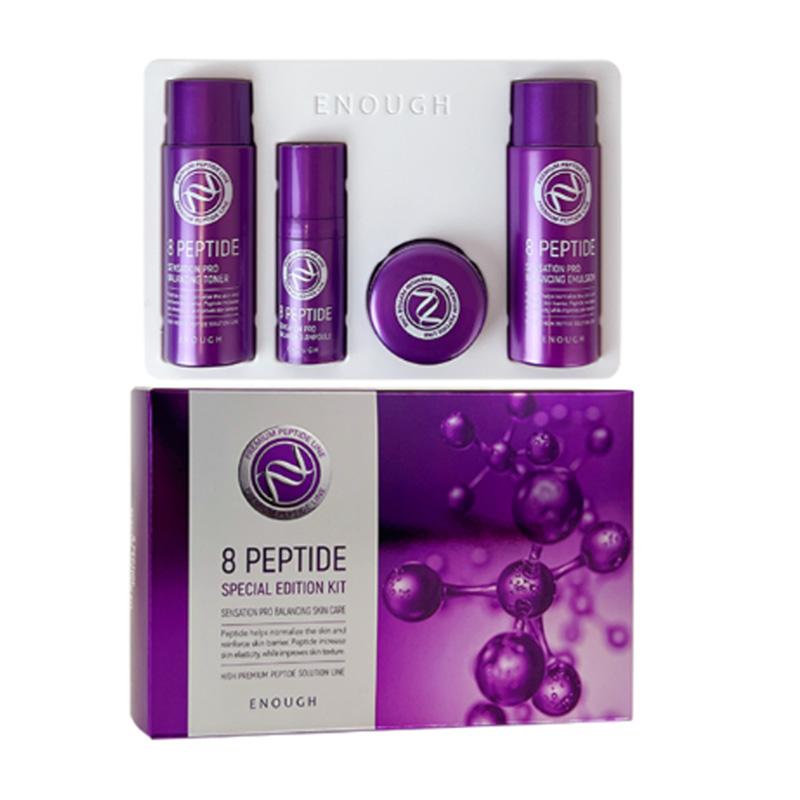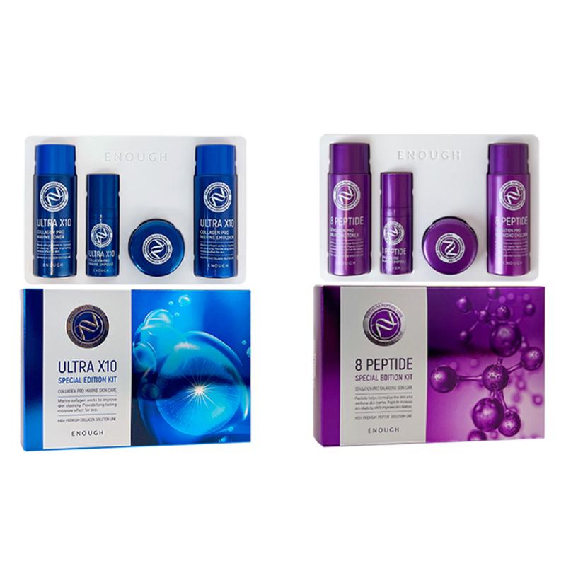 🗹Enough Premium Ultra X10 Special Edition Kit 4 Set Это косметический набор из 4-х антивозрастных коллагеновых продуктов, которые проникают глубоко в эпидермис и помогают восстановить эластичность кожи.. Продукты активизируют процессы выработки собственного коллагена и эластина в клетках кожи, укрепляют тургор и восстанавливают клеточный матрикс.. Продукты подтягивают, помогают разгладить морщины, а также продлевают молодость кожи.. Enough Ultra X10 Collagen Pro Marine Тоник (55 мл) - этот омолаживающий тоник с коллагеном способствует укреплению соединительных тканей, тем самым подтягивая кожу, делая ее более упругой и эластичной, разглаживая возрастные морщины и улучшая цвет лица.. Тонер нормализует гидролипидный баланс кожи, восполняет недостаток влаги, устраняет сухость и ощущение стянутости после умывания.. Enough Ultra X10 Collagen Pro Морская эмульсия (55 мл) – омолаживающая эмульсия с коллагеном прекрасно увлажняет и подтягивает кожу. Великолепено подходит для использования в качестве ежедневного увлажняющего крема.. Эмульсия повышает упругость и эластичность эпидермиса, разглаживает морщины, укрепляет и подтягивает кожу, делает цвет лица свежим, красивым и здоровым.. Enough Ultra X10 Collagen Pro Marine Ампула (10 мл) коллагеновая сыворотка для упругости кожи. Сыворотка работает одновременно в двух направлениях.: увлажняет и омолаживает, а также снимает покраснения и успокаивает. Это делает его незаменимым помощником в уходе за чувствительной кожей.. Enough Ultra X10 Collagen Pro Морской крем (20 мл) антивозрастной крем с коллагеном. Создан специально для ухода за нежной и чувствительной кожей.. Средство увлажняет кожу, осветляет темные круги под глазами, снимает отечность и разглаживает мимические морщины.. Крем является отличной профилактикой появления возрастных морщин.. Способ использования: На очищенное лицо нанесите тонер похлопывающими движениями, затем 2-3 капли сыворотки, после впитывания – эмульсию и/или крем для лица. (если кожа очень сухая, можно нанести эмульсию и крем)
