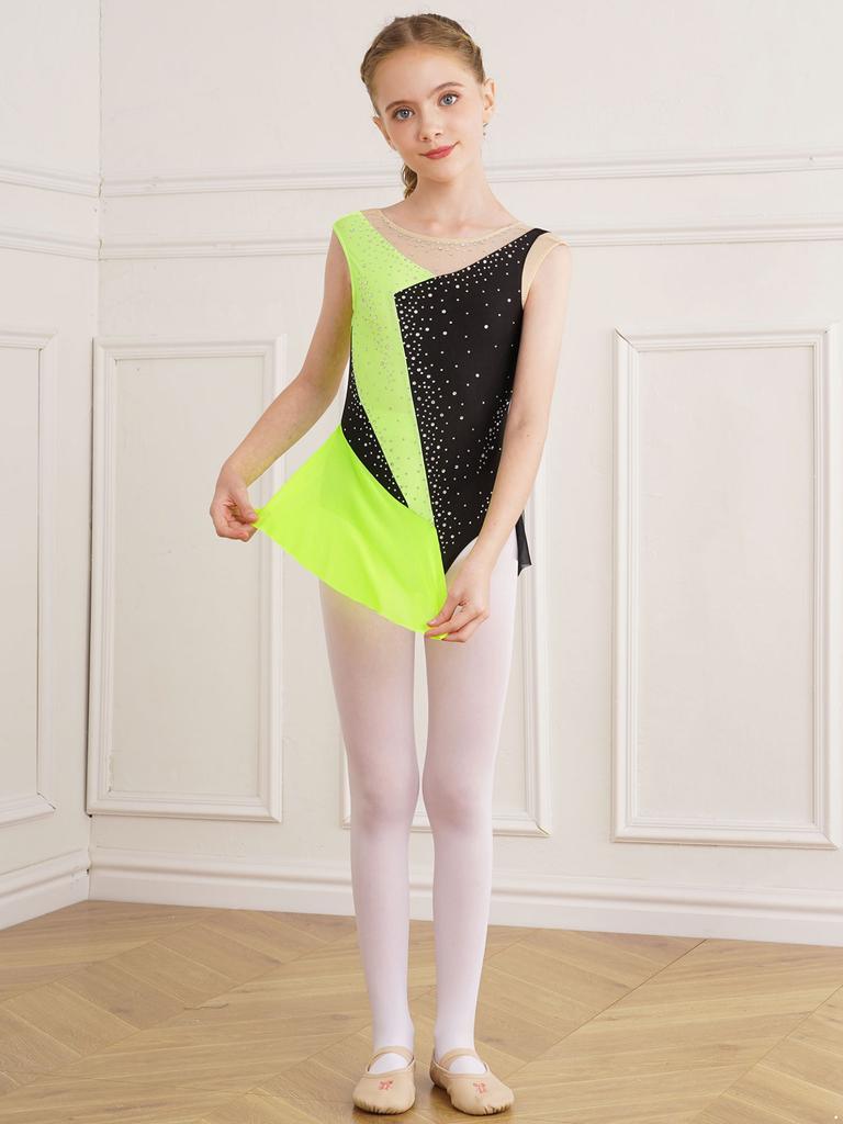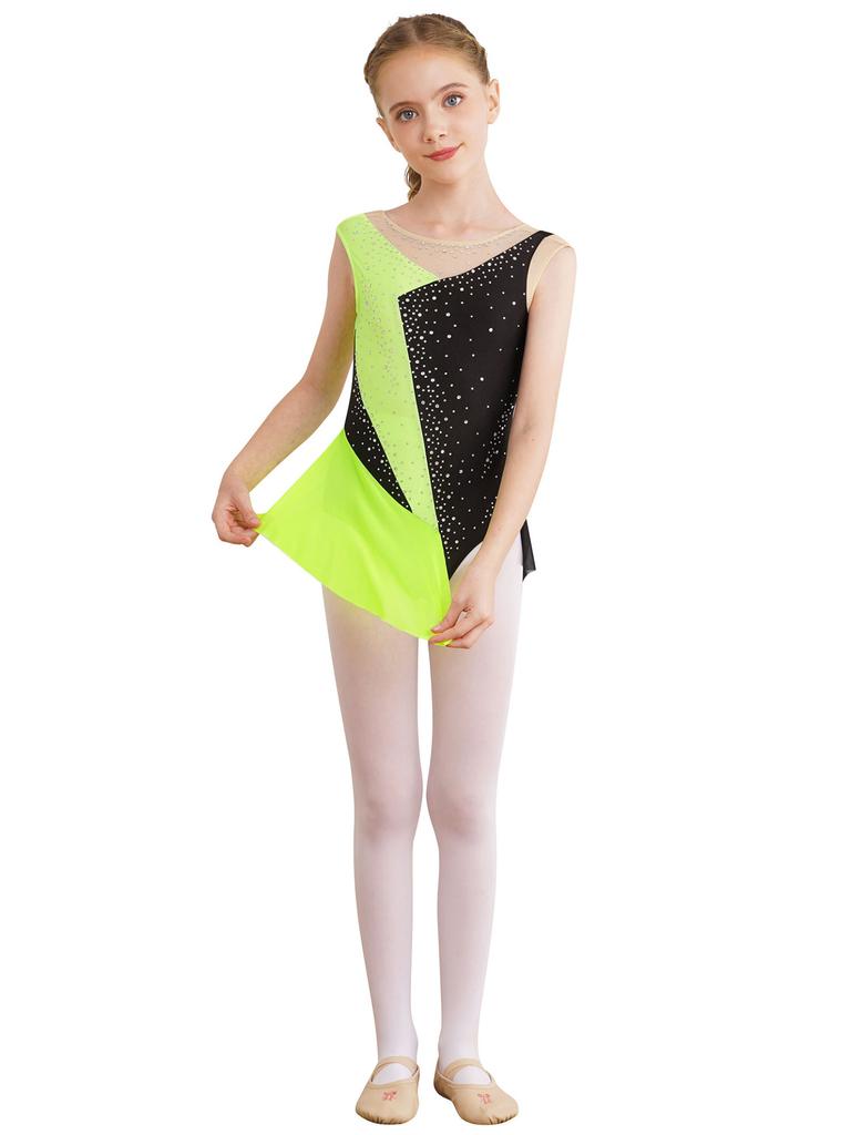 Детский комбинезон для балета, джаза, современного танца, блестящая сетка со стразами, одежда для художественной гимнастики, сценическая одежда, нарядный комбинезон для катания на коньках