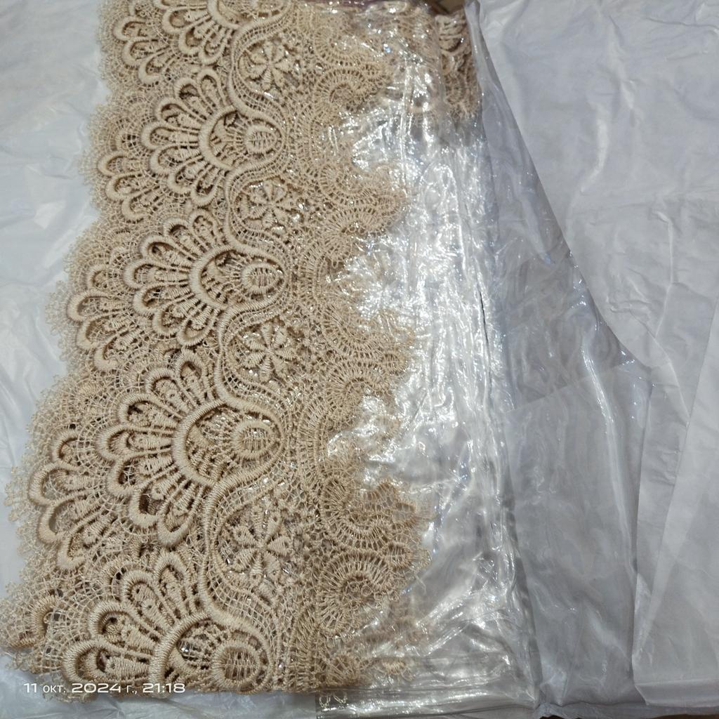 Скатерть тоньше, чем я ожидала! Кружево прикреплёно не качественно. Кружевные выступающие вершинки вообще не прикреплены!!! Когда скатерть лежит на столе они падают. Попробую наклеить на скотч, хотя в успехе не уверена!!! Это кропотливая работа, нужно время! В целом неплохо было бы, будь цена ниже! Видела бы вживую, выбрала бы потемнее, но это и дороже! Кружевной край не очень широкий. Кружево обычное, в любом шейном отделе можно купить, и самим пришить к прозрачной скатерти!
