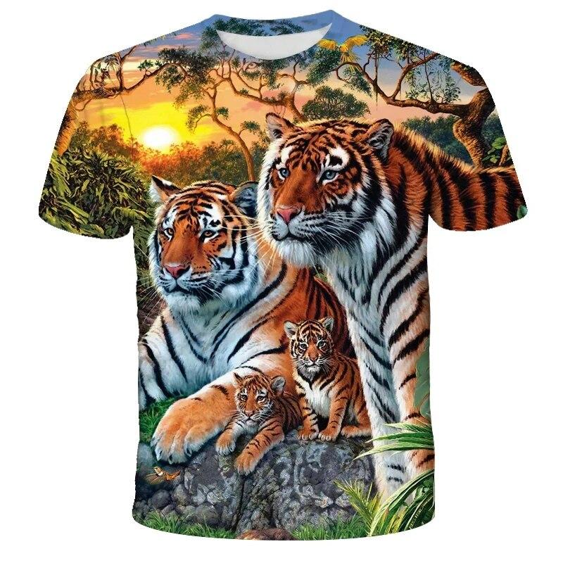 Футболка с 3D принтом «Тигр Лев» для детей/взрослых, повседневная модная футболка для мужчин и мальчиков, большие детские футболки с короткими рукавами