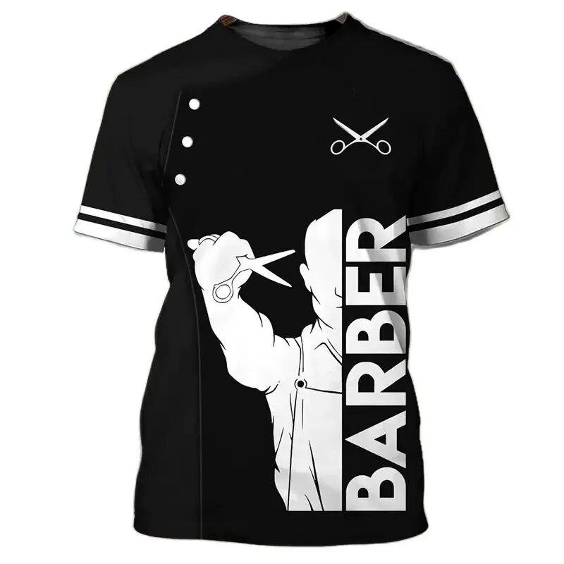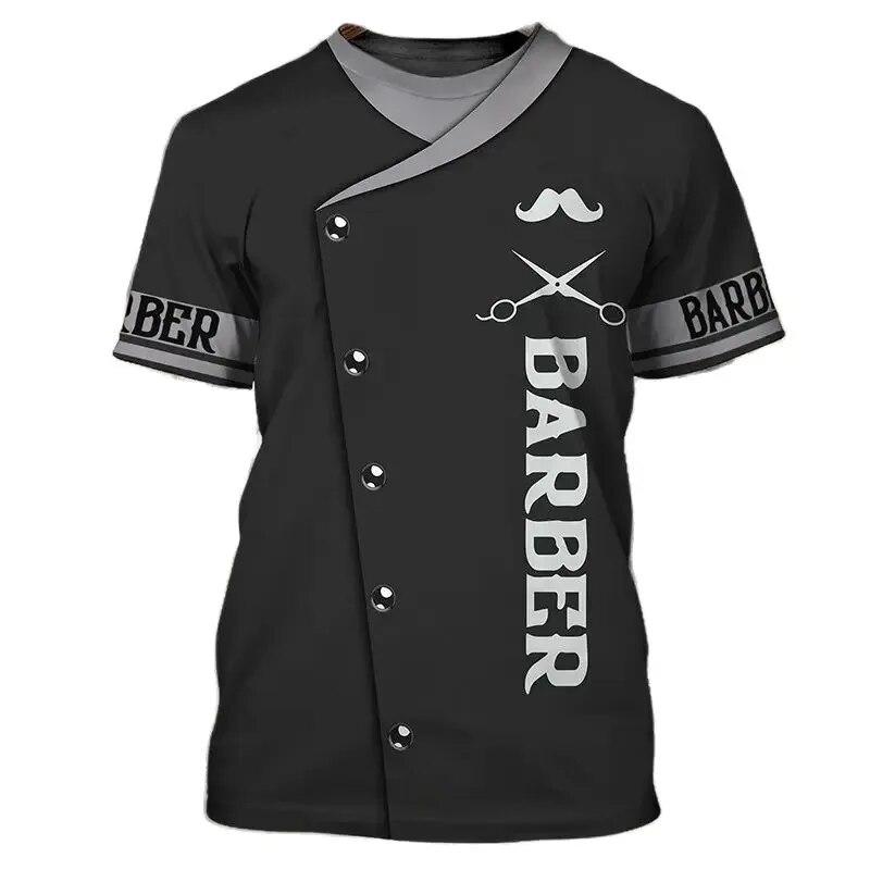 Парикмахерская мужская футболка для стрижки с принтом, летняя мужская модная футболка с короткими рукавами и круглым вырезом, мужская одежда больших размеров, блузка Camisa