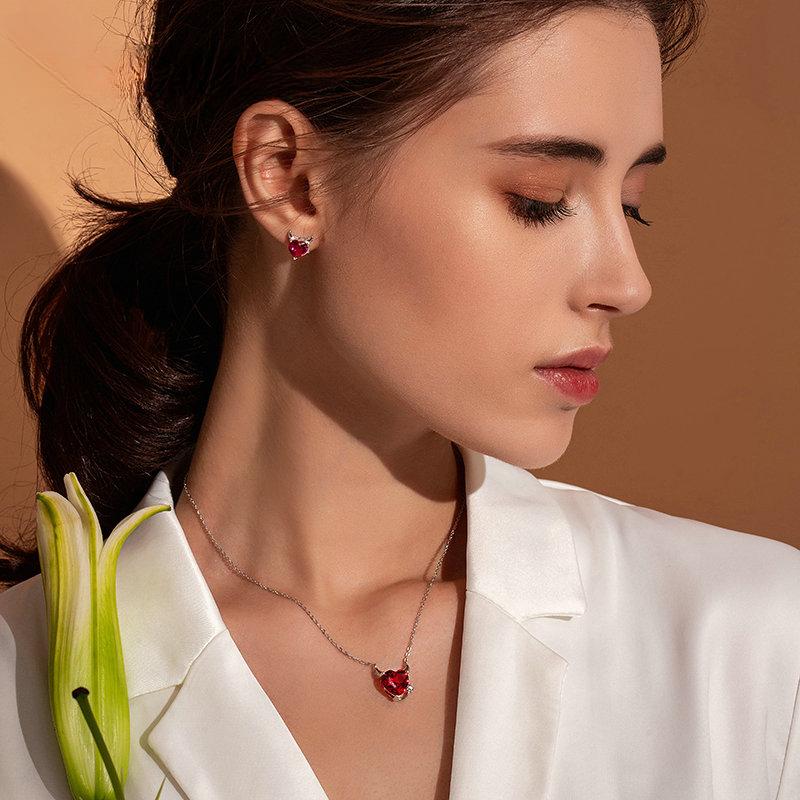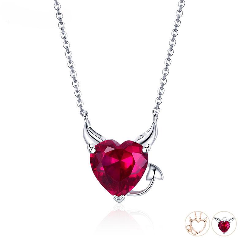 Новая коллекция 100% стерлингового серебра 925 пробы красный циркон маленький дьявол ожерелье кулон для женщин модные серебряные украшения