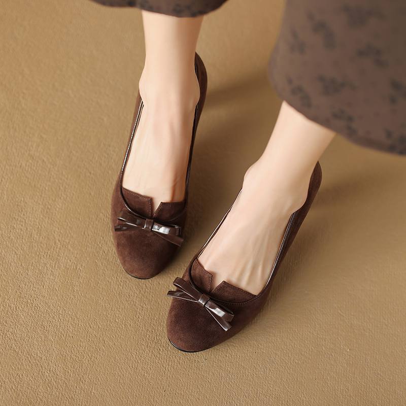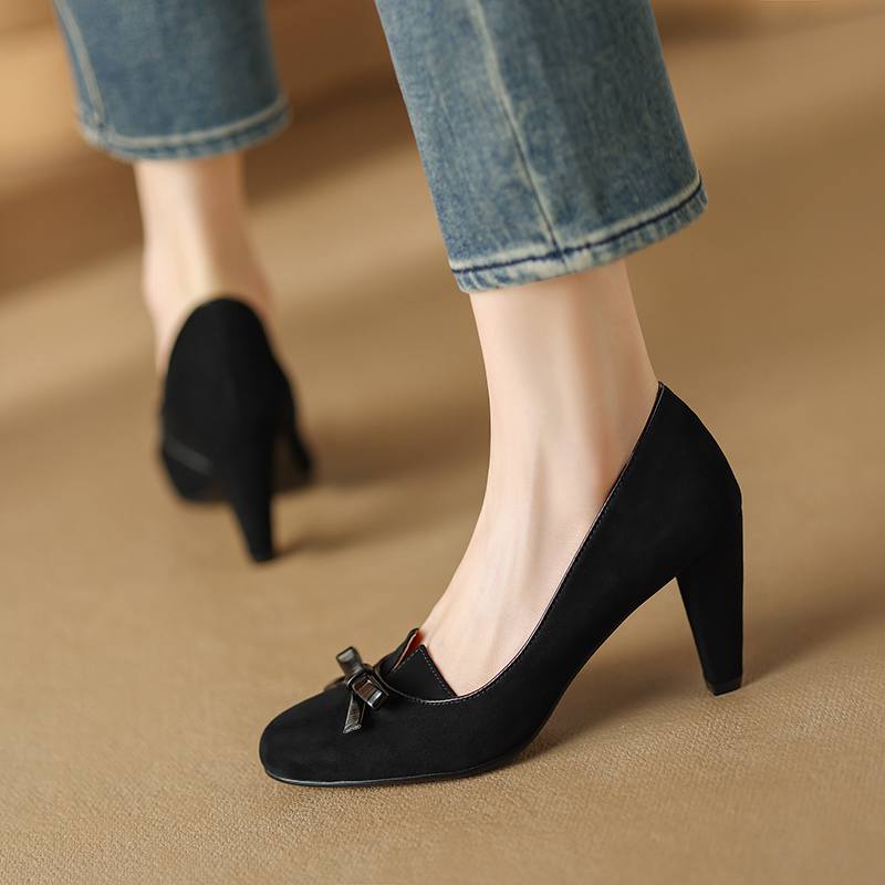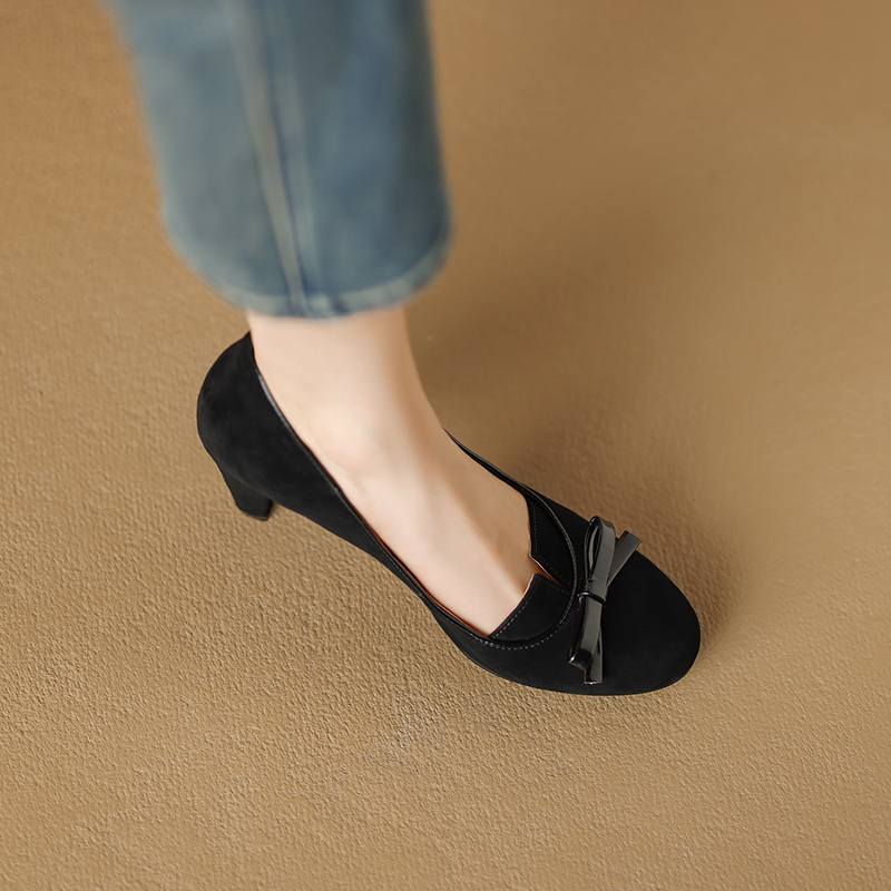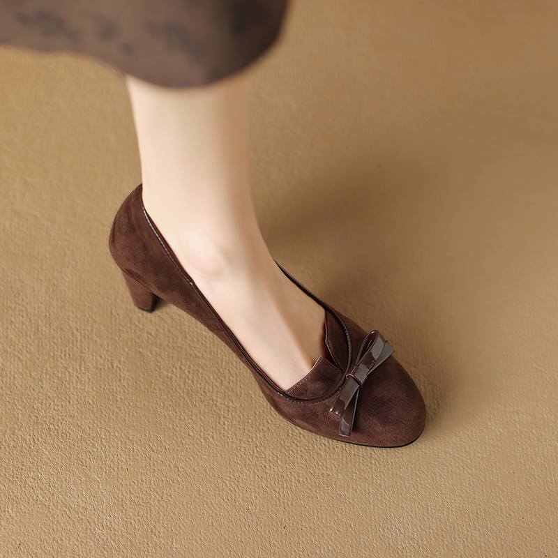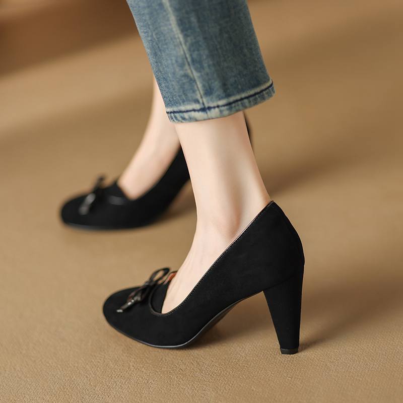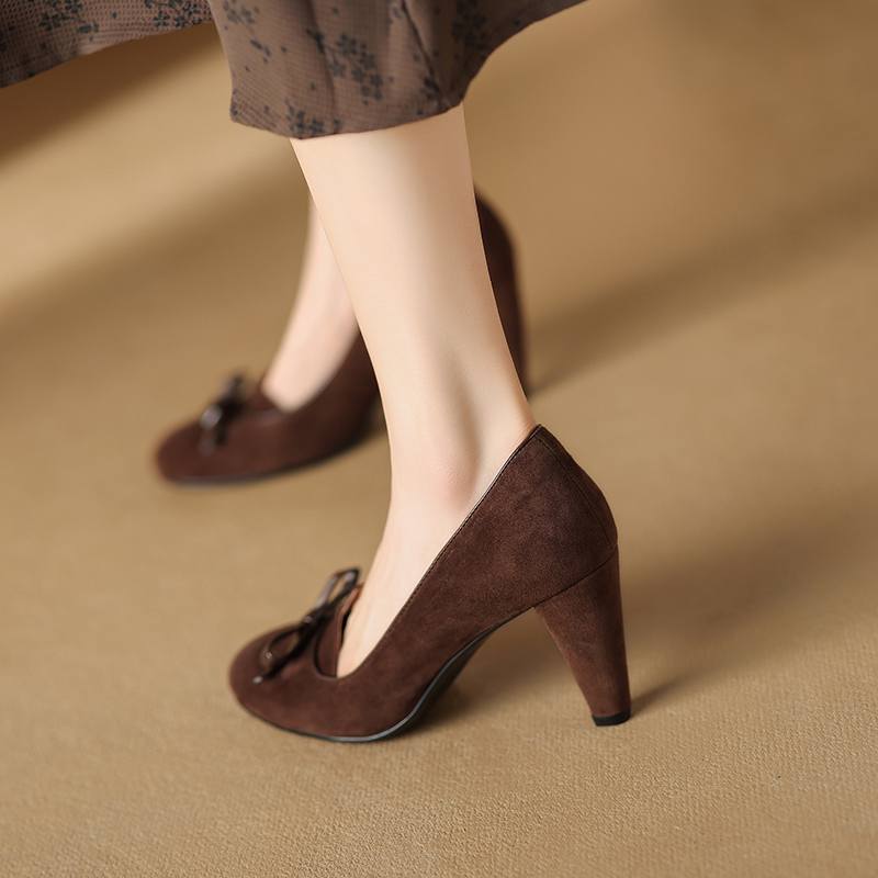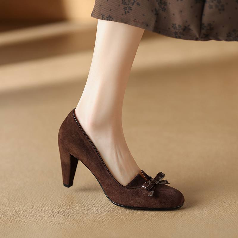 Krazing Pot Туфли из овечьей замши с круглым носком на высоком каблуке, весенне-летние туфли с узлом-бабочкой, винтажные женские туфли-лодочки