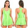 Женское глянцевое платье-майка без рукавов с высокой талией, купальники для спорта