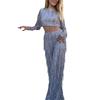 Выделитесь в толпе с помощью этого модного комплекта для горячих девушек с длинными рукавами, укороченным топом и прямыми брюками с кисточками с блестками.