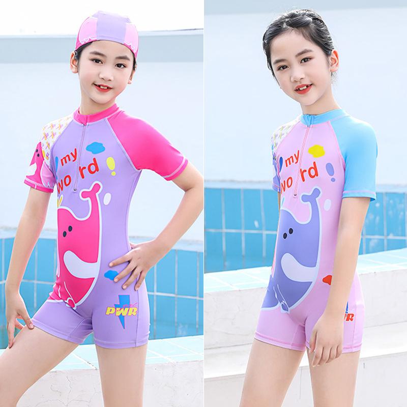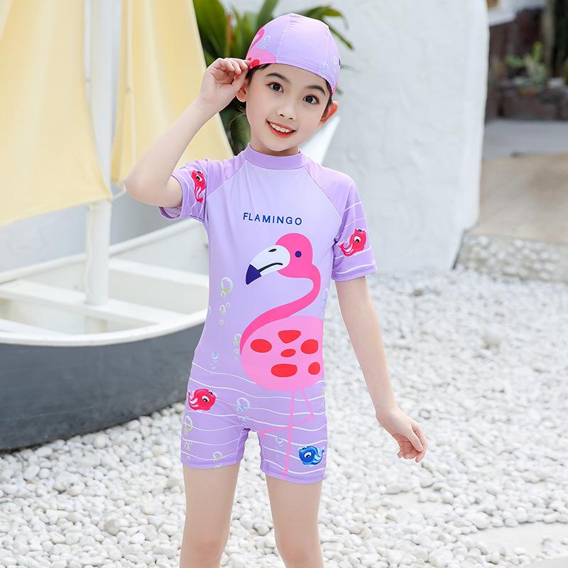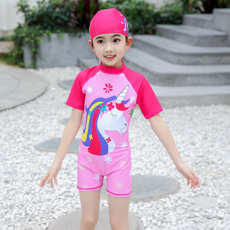 Комплект милого детского купальника для девочек, цельный купальник и шапочка для плавания