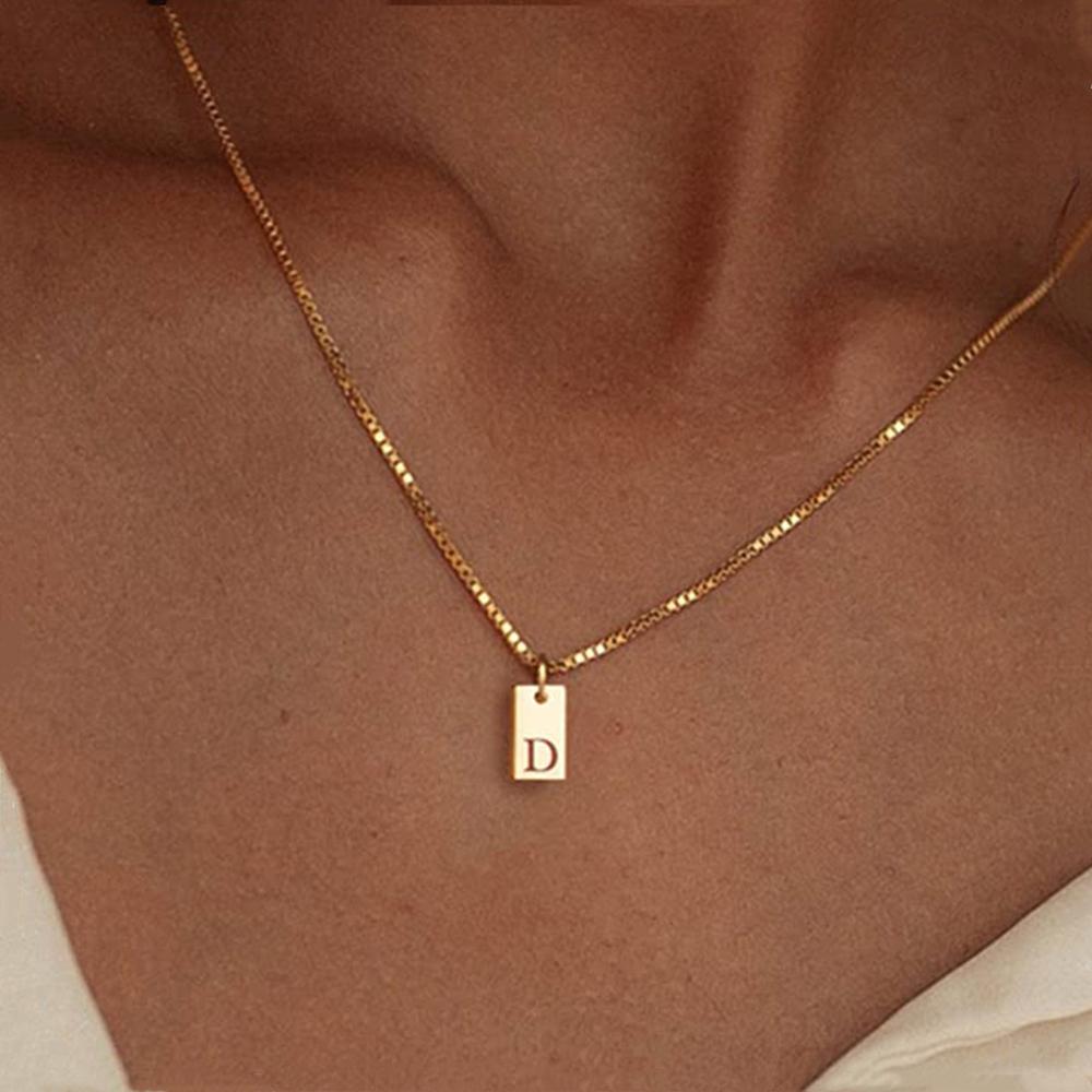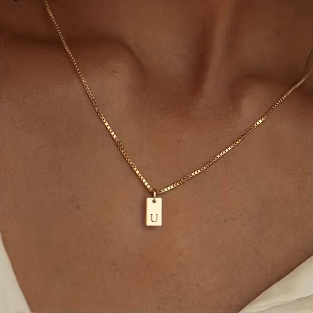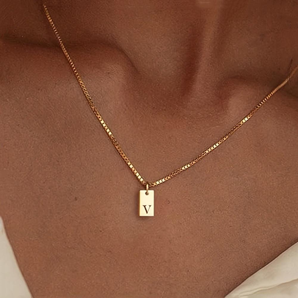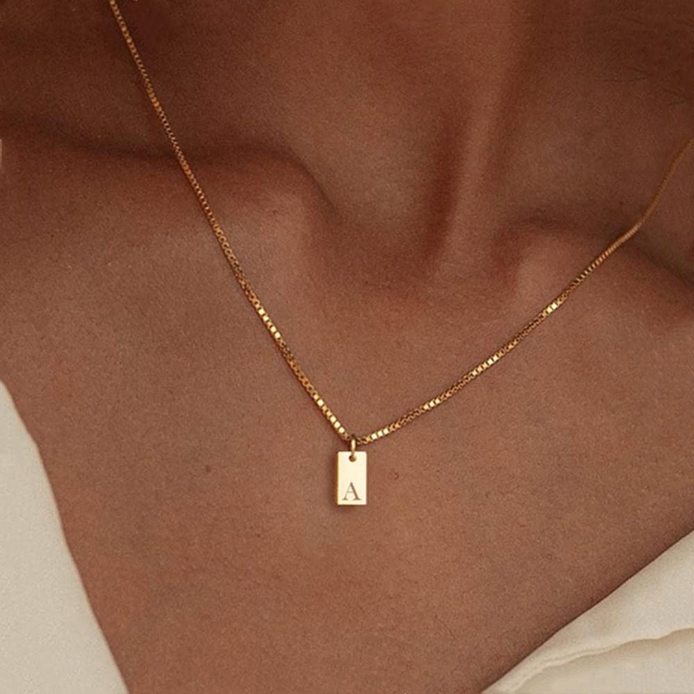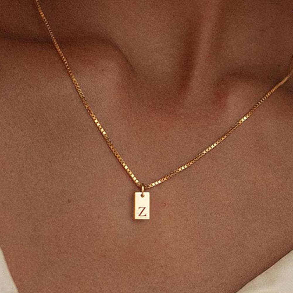 Крошечный квадратный AZ с подвеской в виде алфавита, ожерелье для женщин, цепочка на ключицу, ожерелье из нержавеющей стали с буквенной буквой, воротник, ювелирные изделия