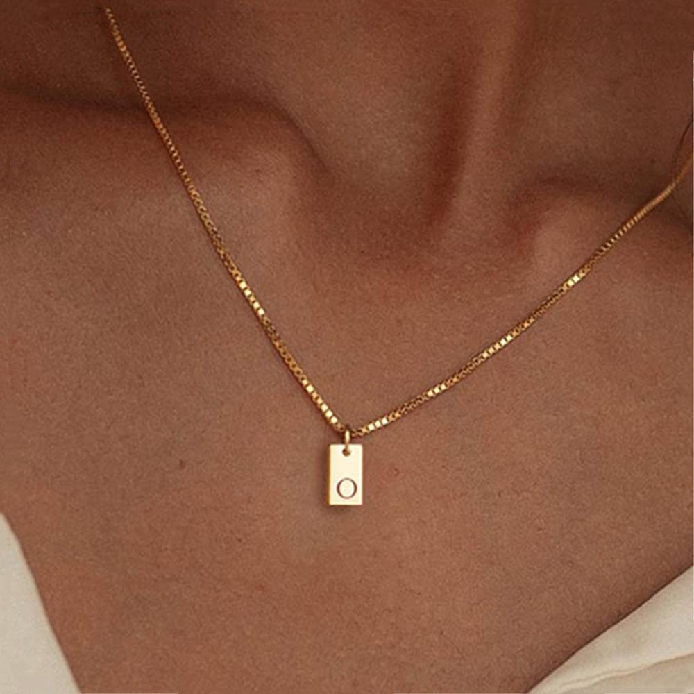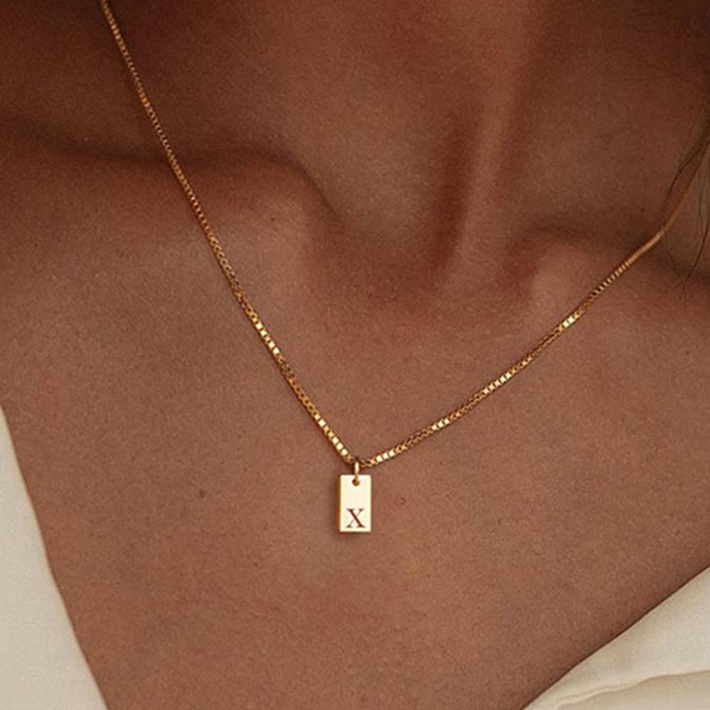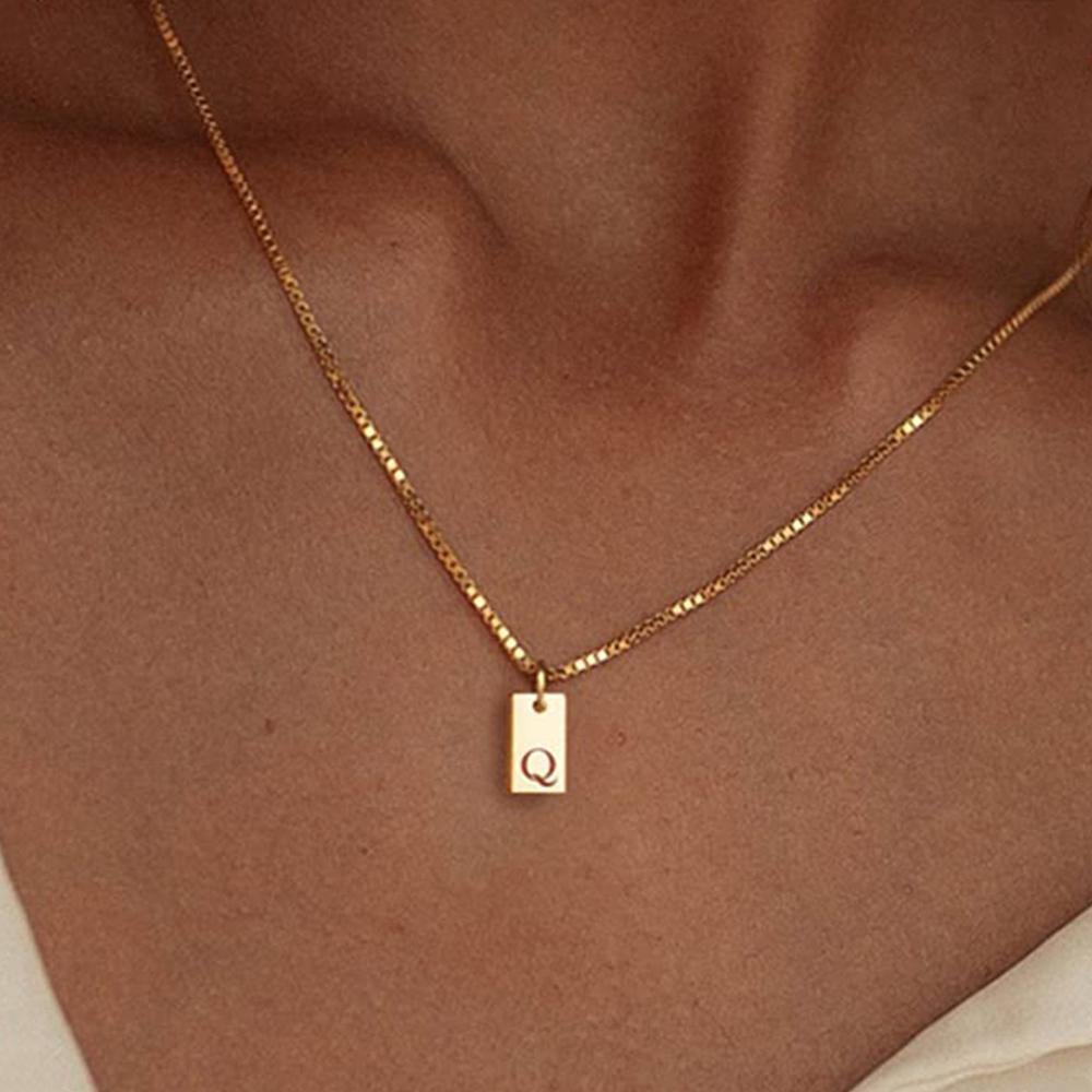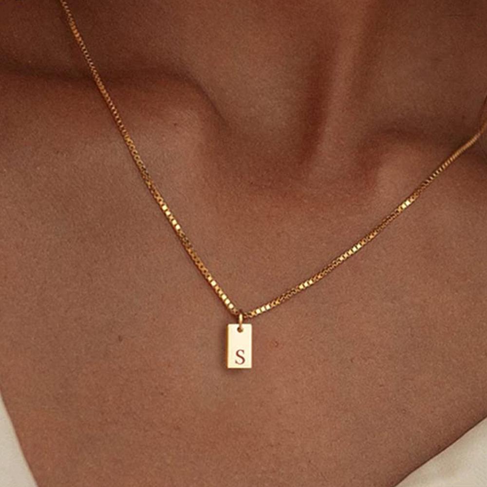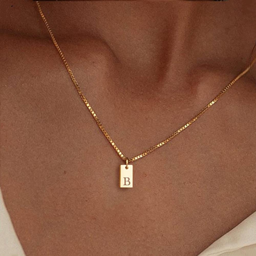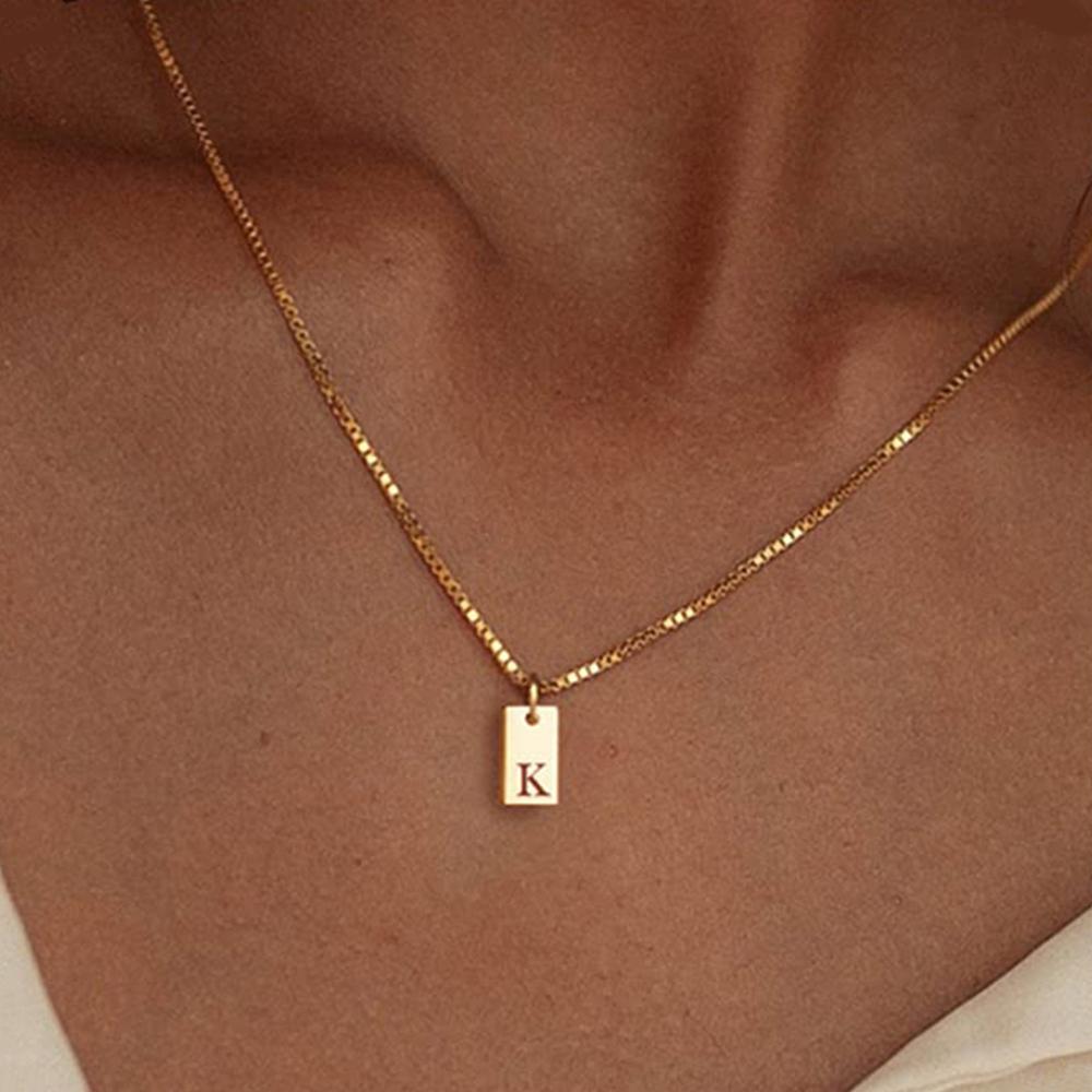 Крошечный квадратный AZ с подвеской в виде алфавита, ожерелье для женщин, цепочка на ключицу, ожерелье из нержавеющей стали с буквенной буквой, воротник, ювелирные изделия