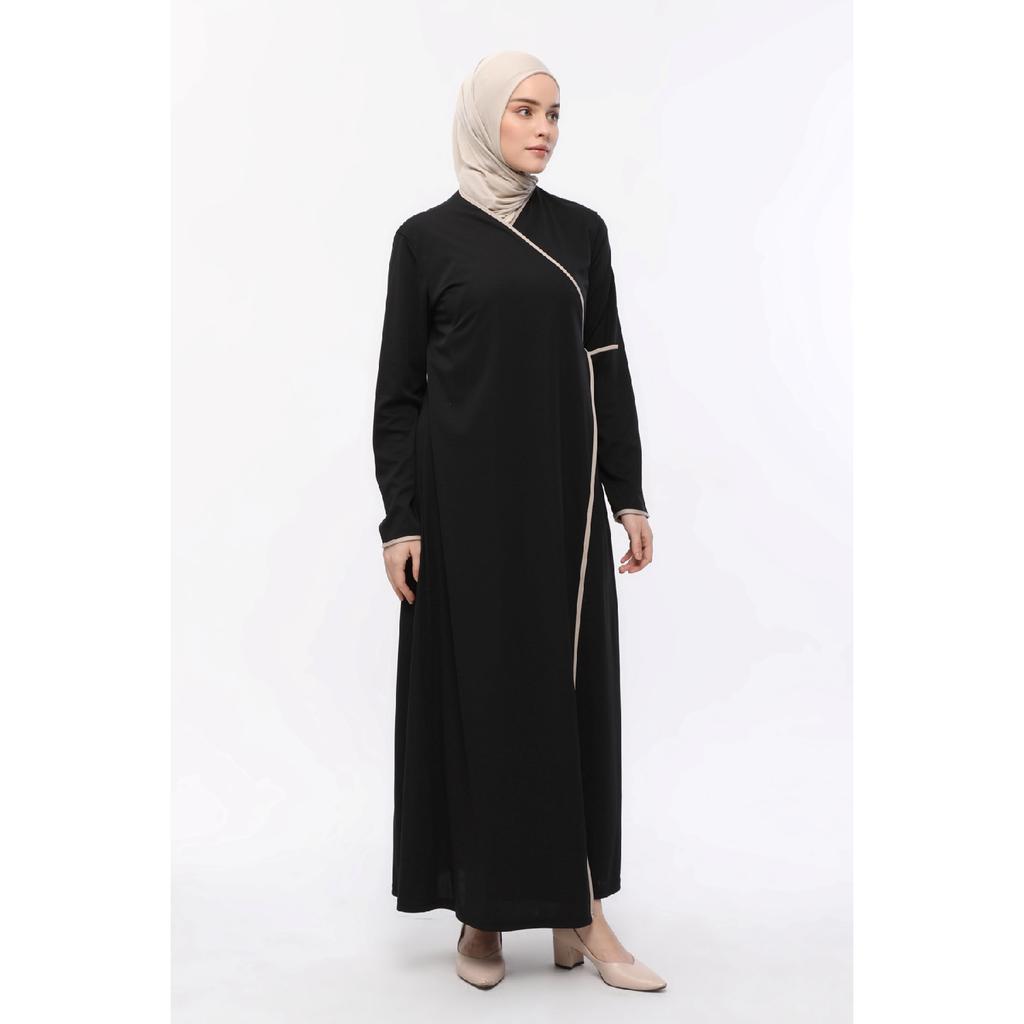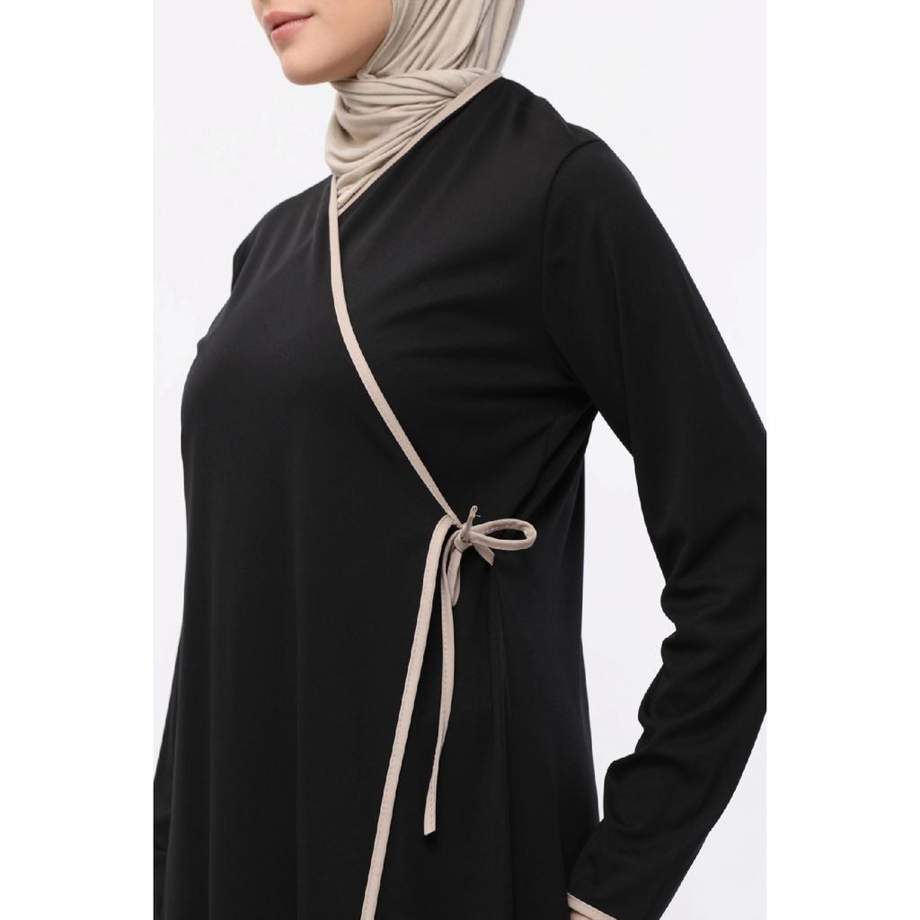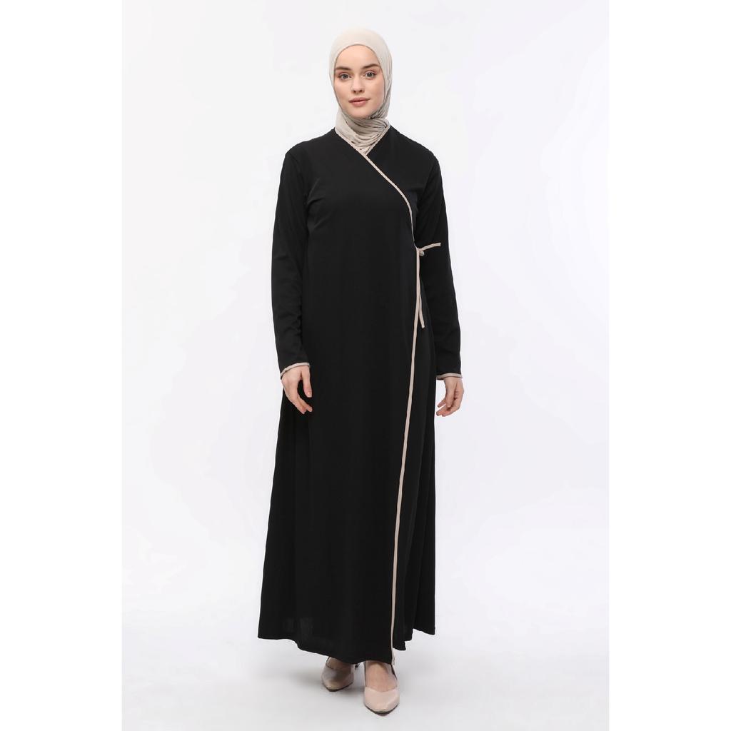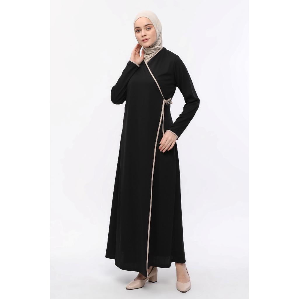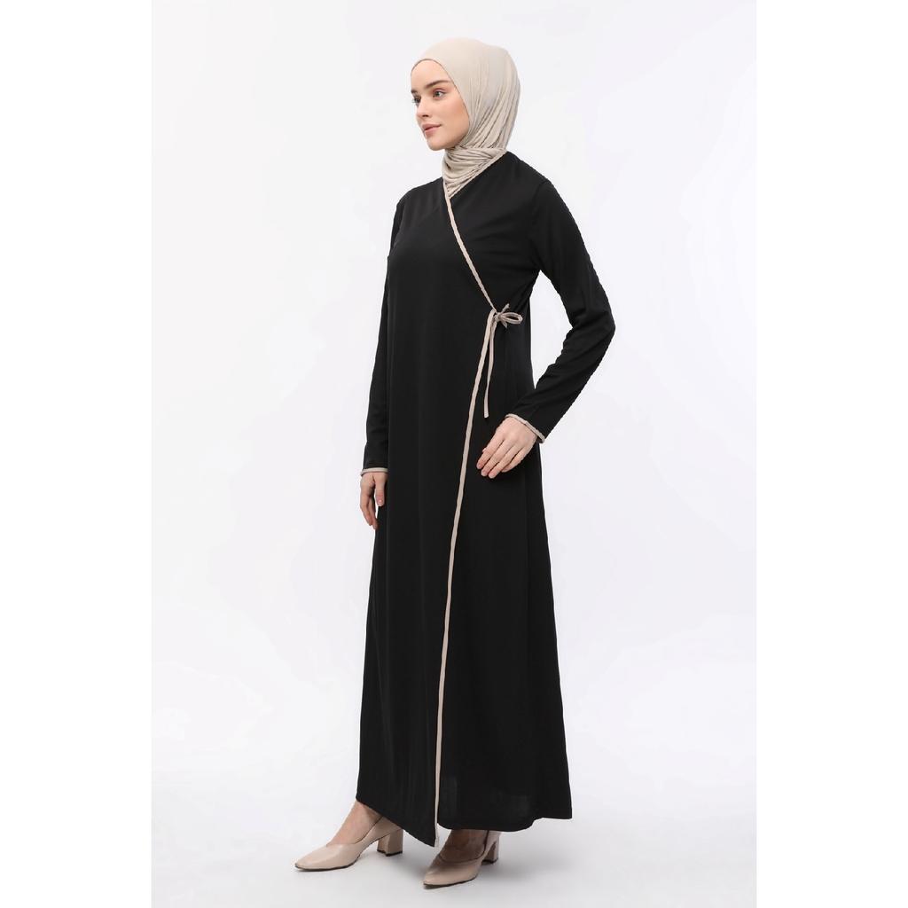 Черное двубортное платье с окантовкой из гибкой ткани интерлок для молитвы Абая