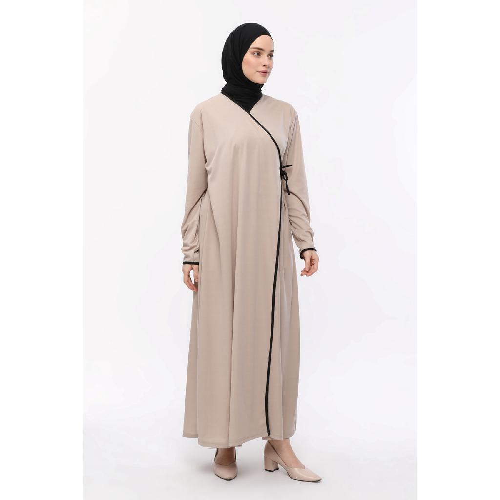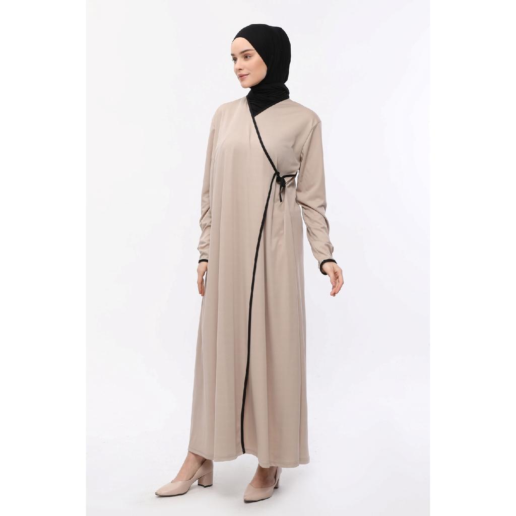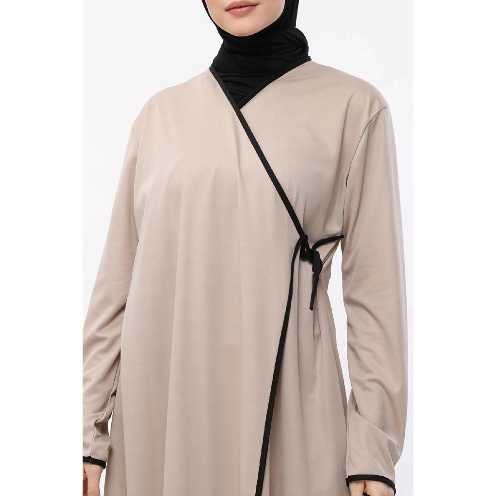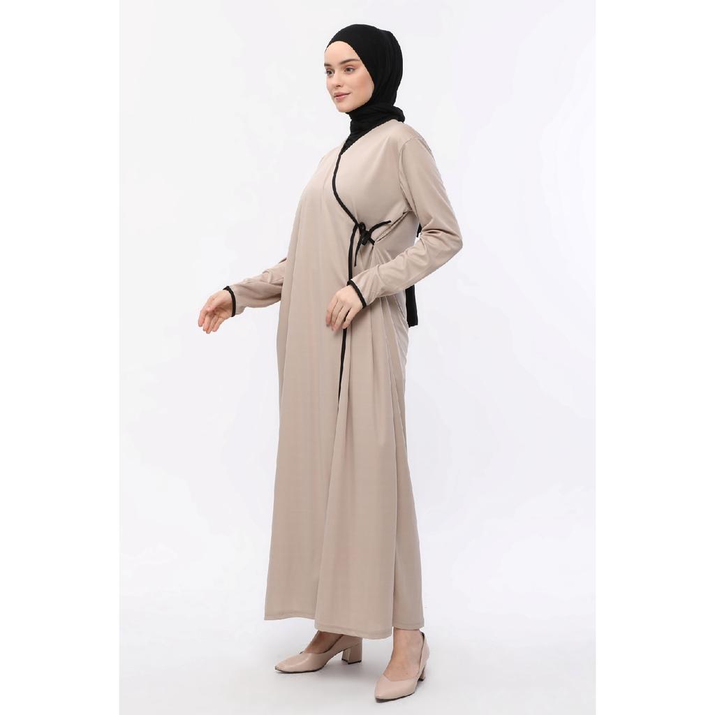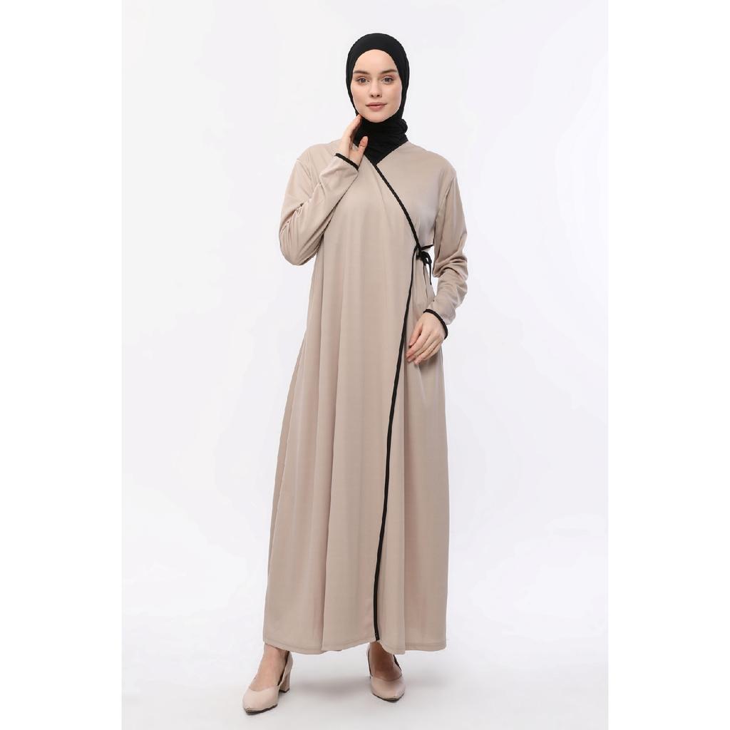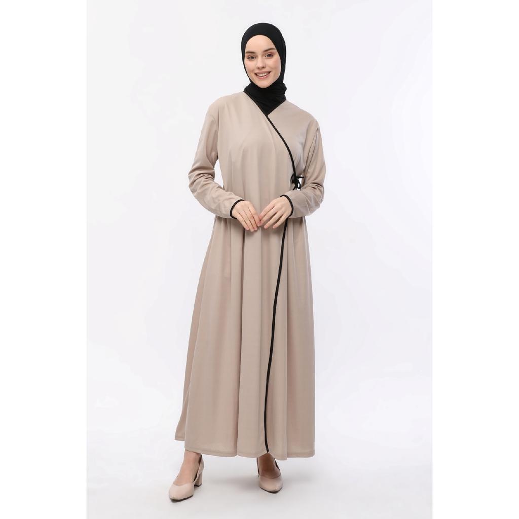Черное двубортное платье с окантовкой из гибкой ткани интерлок для молитвы Абая