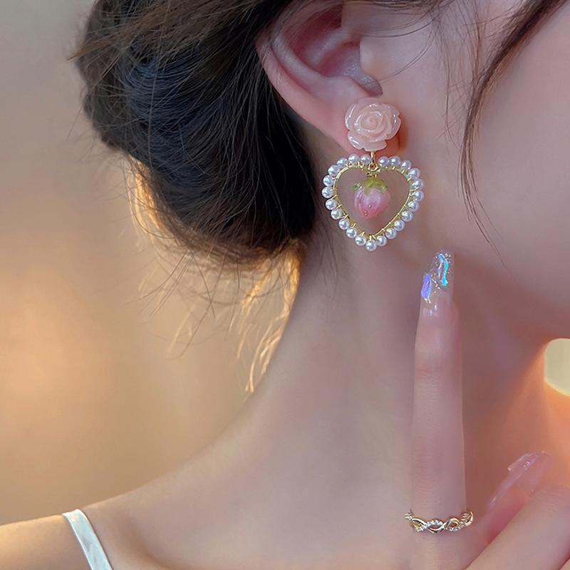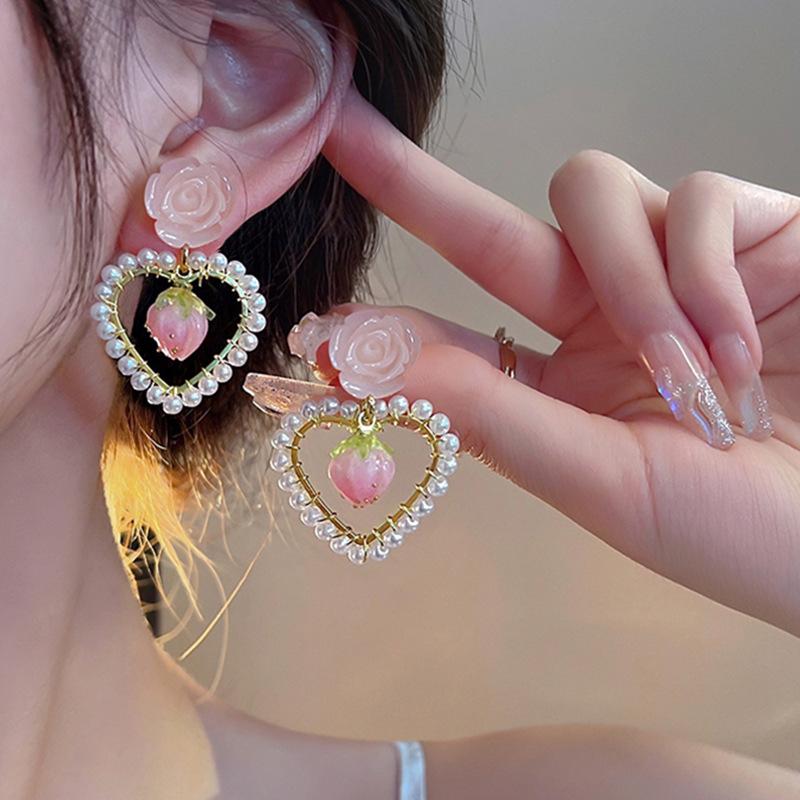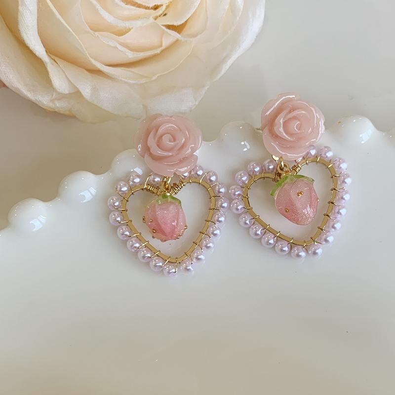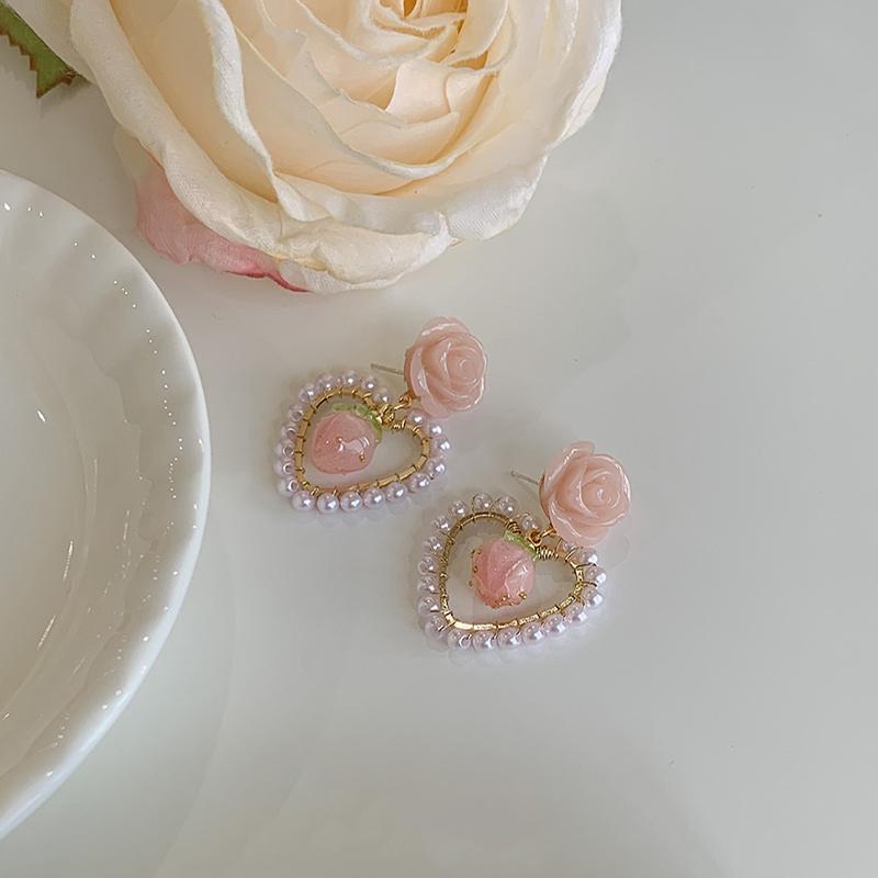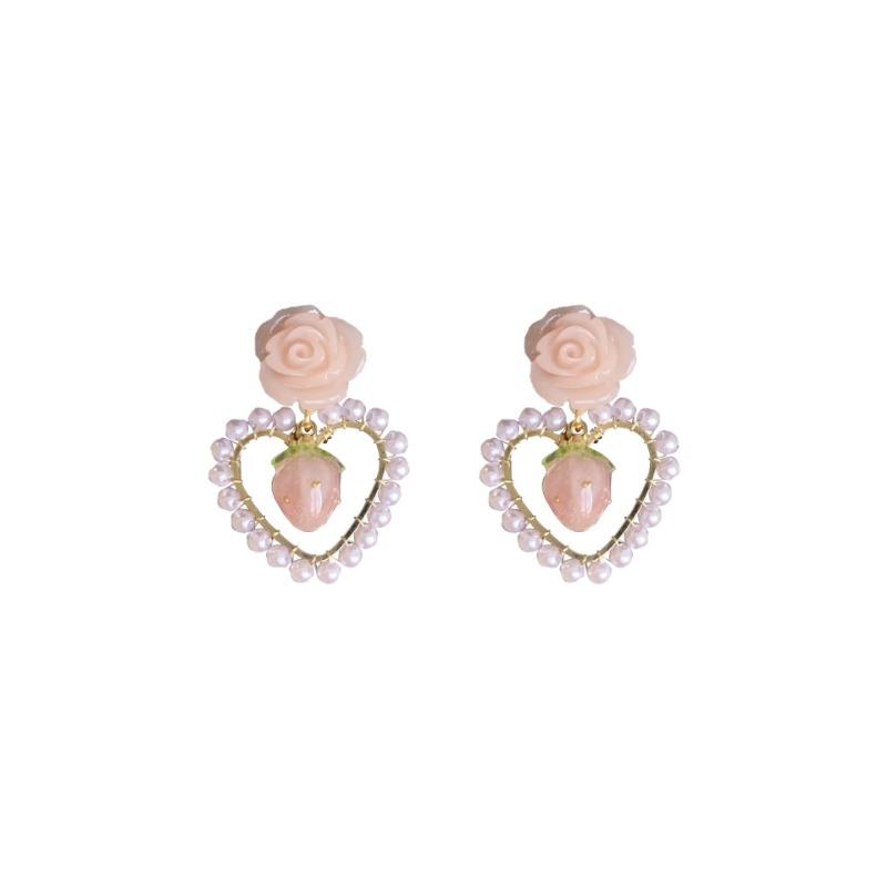 Новый стиль моды розовый жемчуг в форме сердца геометрические серьги