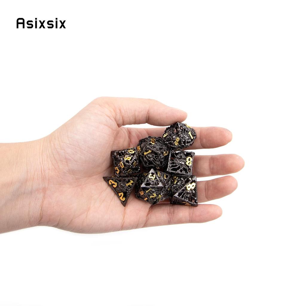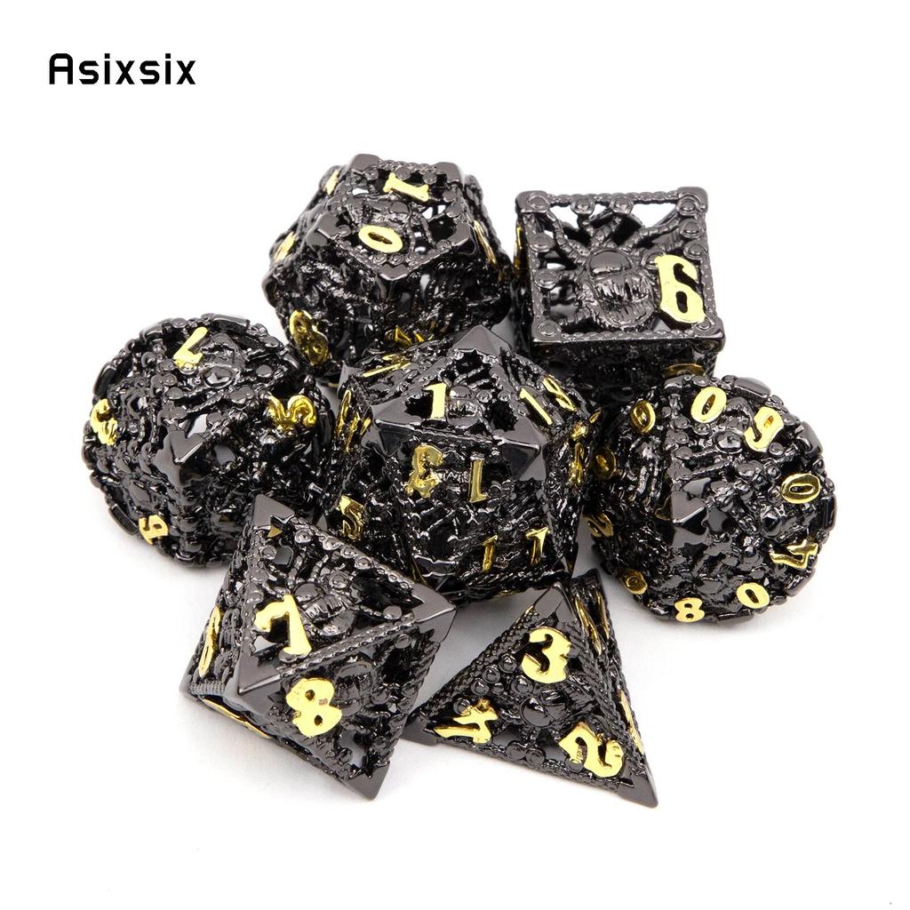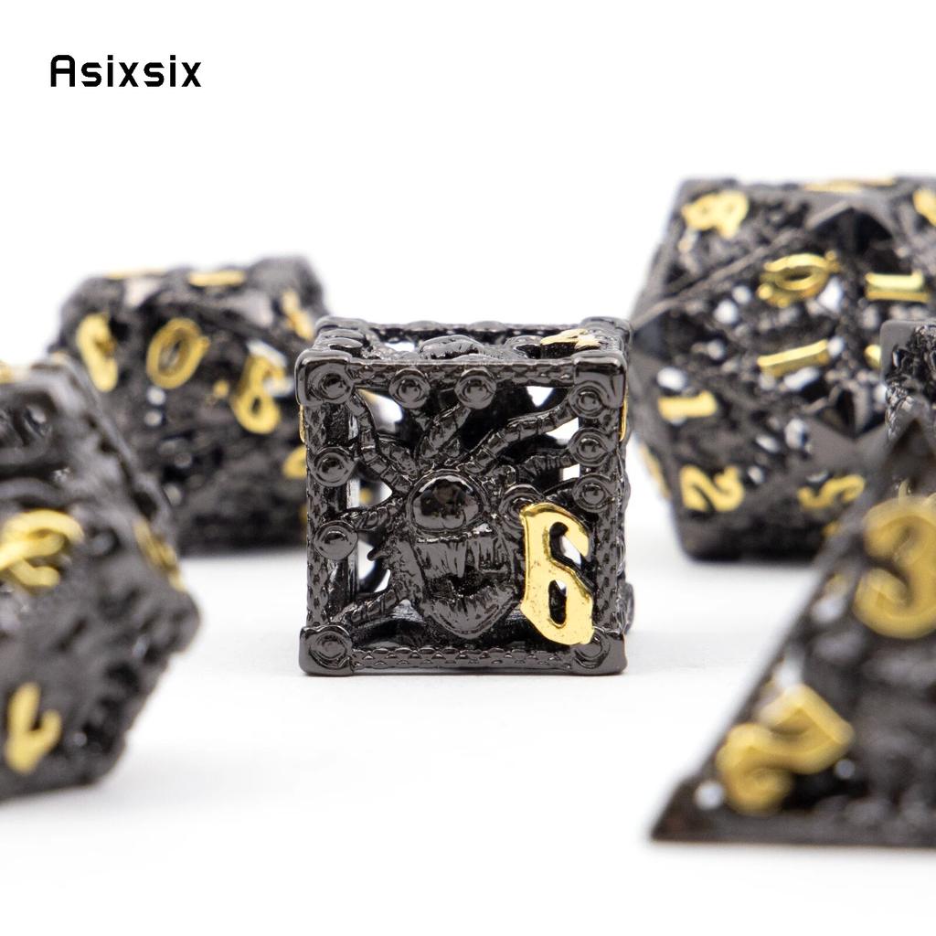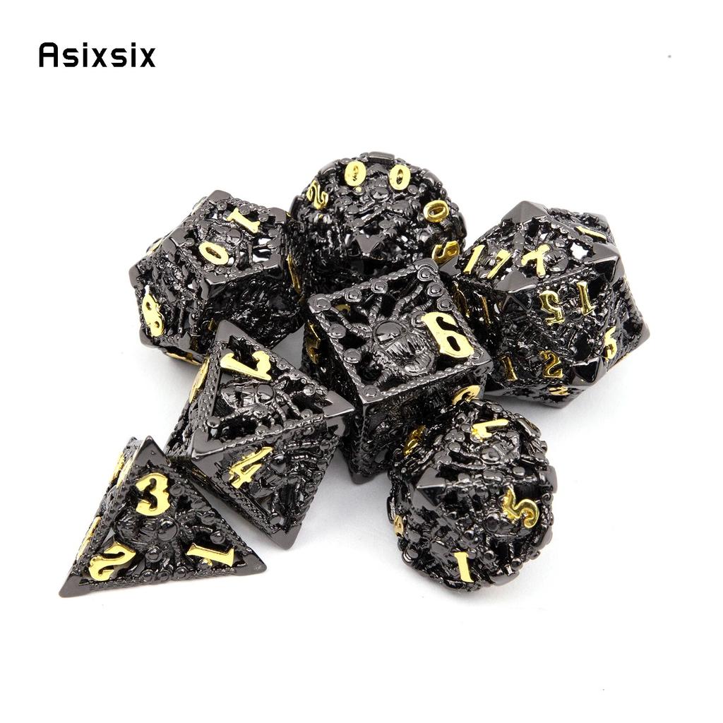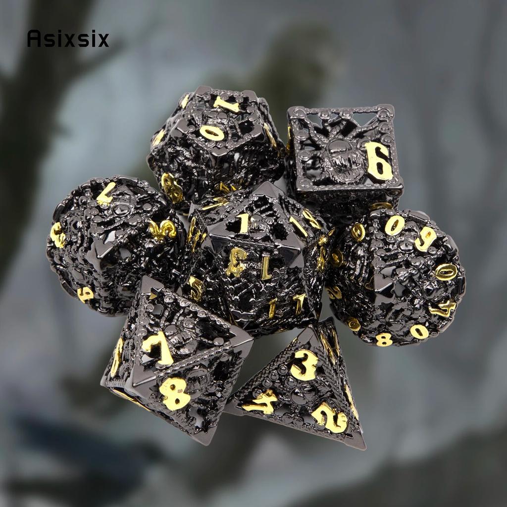 7 шт., золотые, черные металлические кубики в виде осьминога, набор полых металлических многогранных кубиков, подходит для ролевой игры, настольной игры, карточной игры