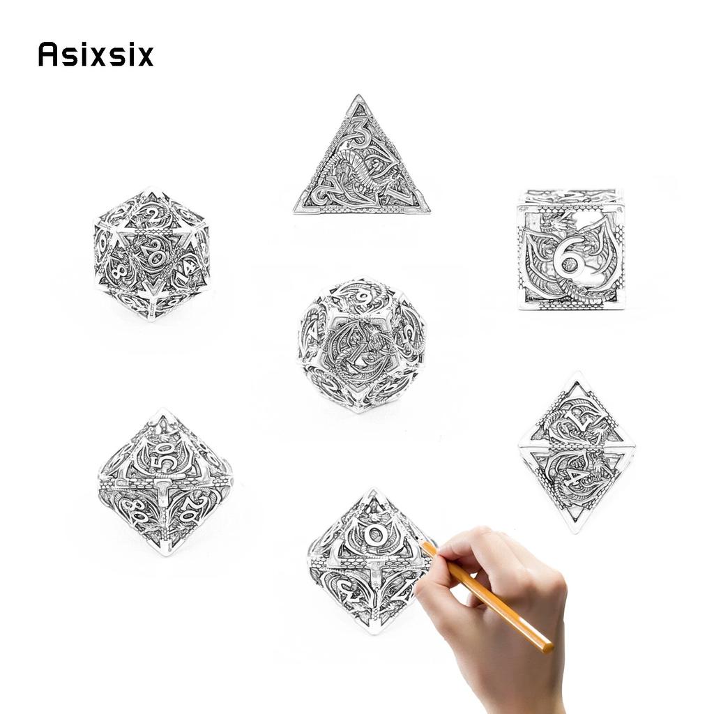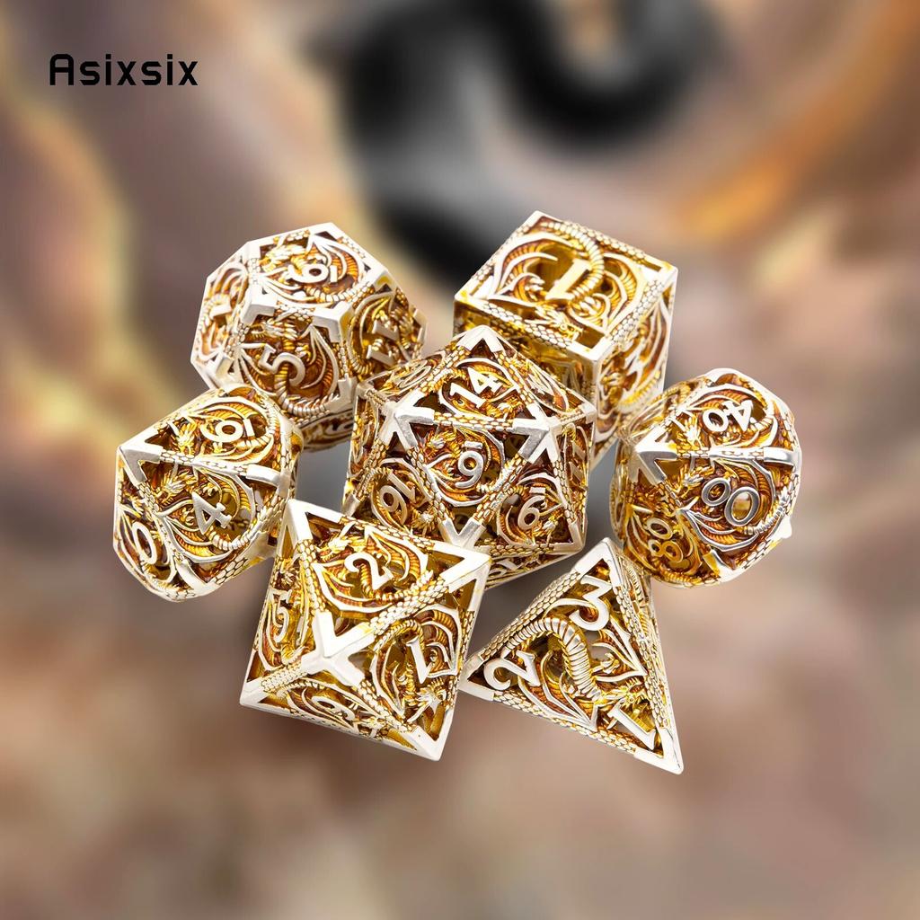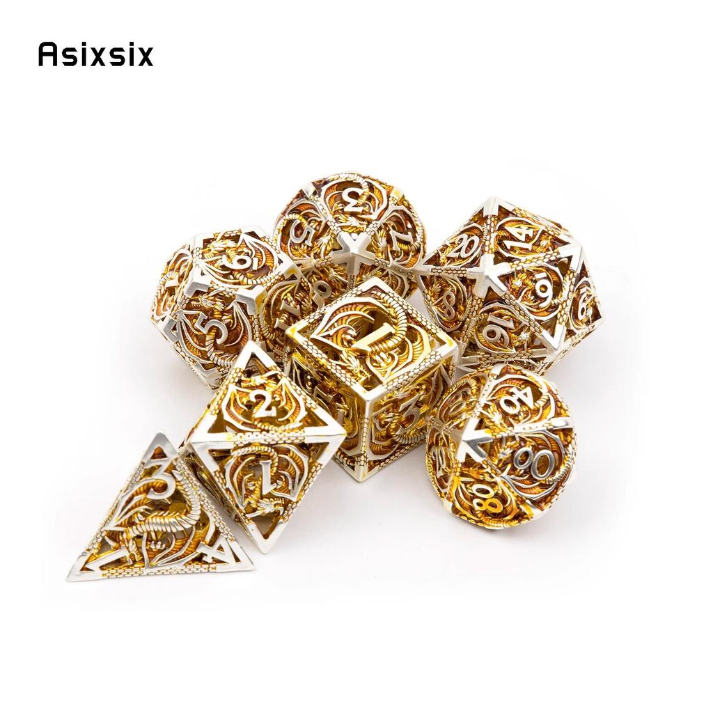 7 шт., металлические игральные кости золотого и белого дракона, набор полых металлических многогранных кубиков с драконом, подходит для ролевой ролевой игры, настольной игры, карточной игры