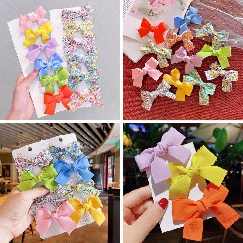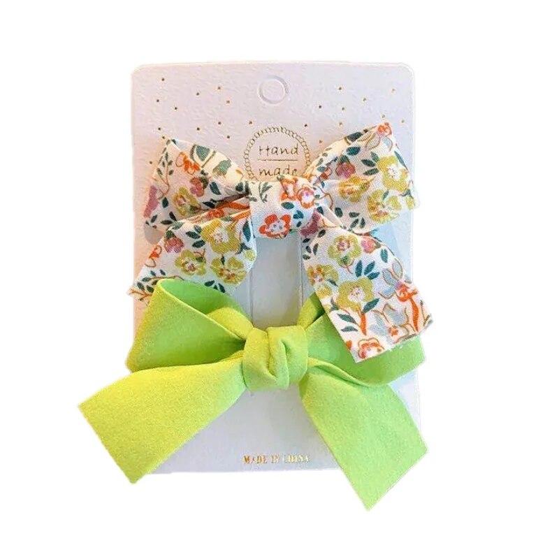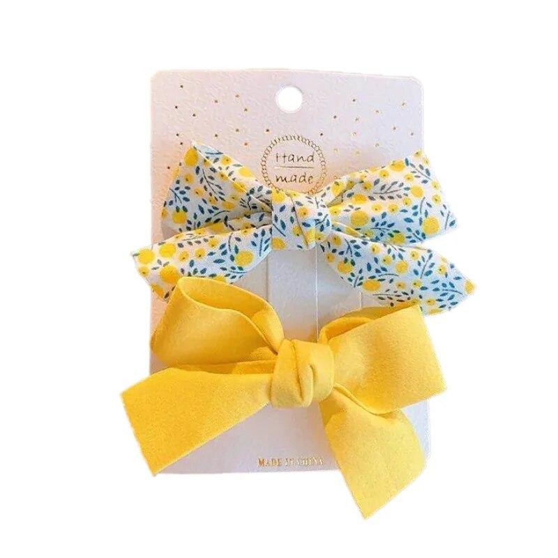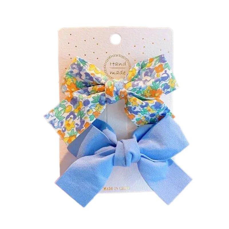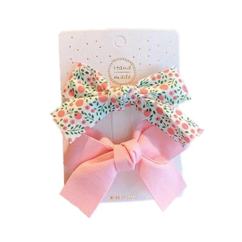 2 шт./компл., хлопковые аксессуары для волос с цветочным принтом, летние заколки для волос с принтами для маленьких девочек, банты для волос для младенцев, заколки для волос