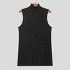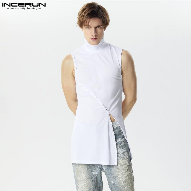 INCERUN Мужская водолазка без рукавов с косыми пуговицами и длинными топами с разрезом