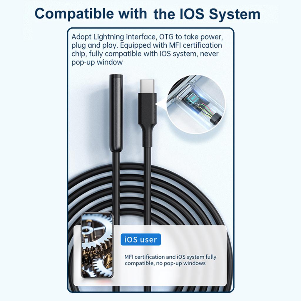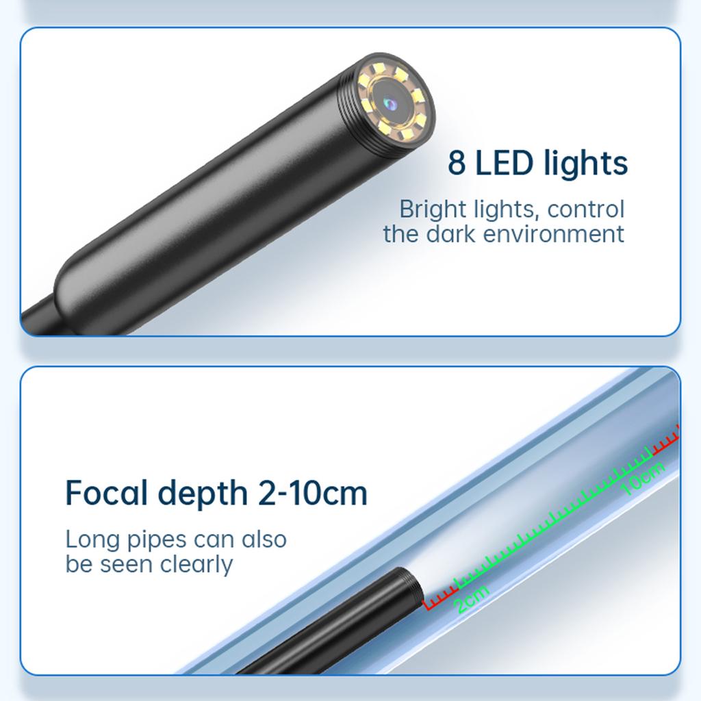 Эндоскопическая камера с подсветкой, водонепроницаемый бороскоп IP67 с 8 светодиодными лампами, полужесткий кабель длиной 16,4 фута,