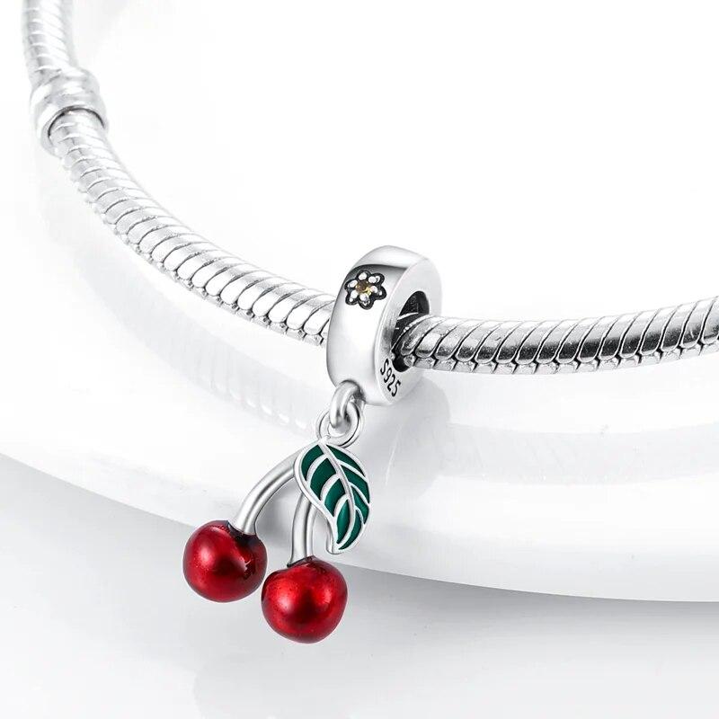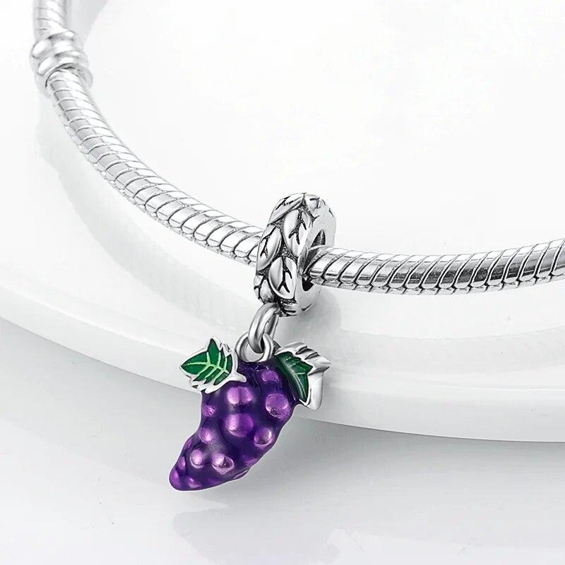 Подходит для оригинального браслета, серия фруктов, бусины, подвески, стерлинговое серебро 925 пробы, виноград, клубника, вишня, висячие браслеты, ювелирные изделия