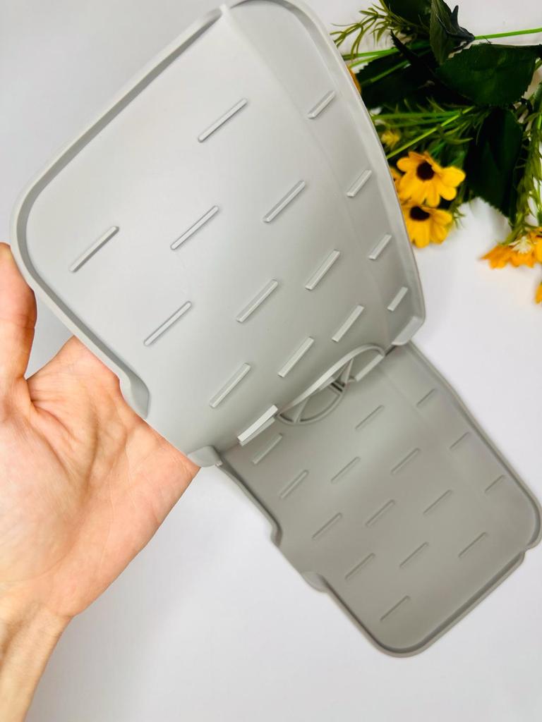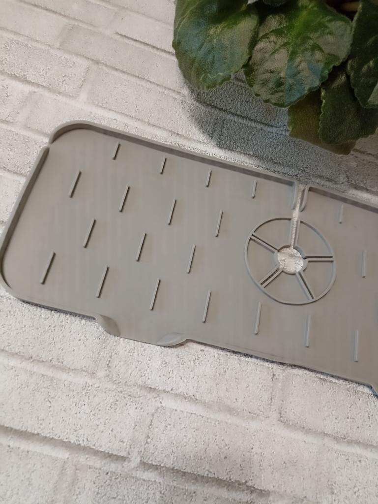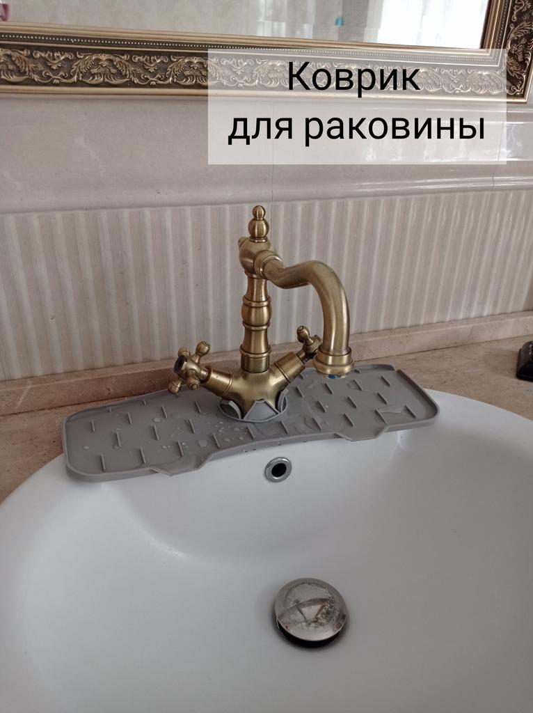 Резиновый коврик для раковины Классное приспособление для организации пространства у раковины, можно положить губку, мыльницу. Вода стекает на коврик. Выполнено качественно. Размер 37 на 14 см. Два цвета на выбор: серый, как у меня, и черный. Доставлен в почтовое отделение за месяц. Товар и продавца рекомендую.